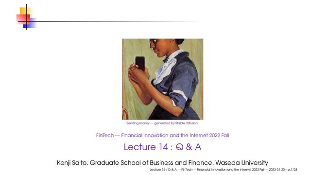 Innovation and the Internet 2022 Fall Lecture 14 : Q & A Kenji Saito, Graduate School of Business and Finance, Waseda University Lecture 14 : Q & A — FinTech — Financial Innovation and the Internet 2022 Fall — 2023-01-20 – p.1/23