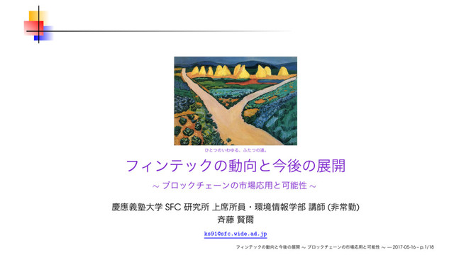 2017年5月16日(火)、総務省北陸総合通信局の主催にて金沢市で開催された「フィンテックセミナー ─ 情報通信技術が切り開く金融の新たな地平と産業・経済・くらしへのインパクト」にて講演した際に使用したスライドです。