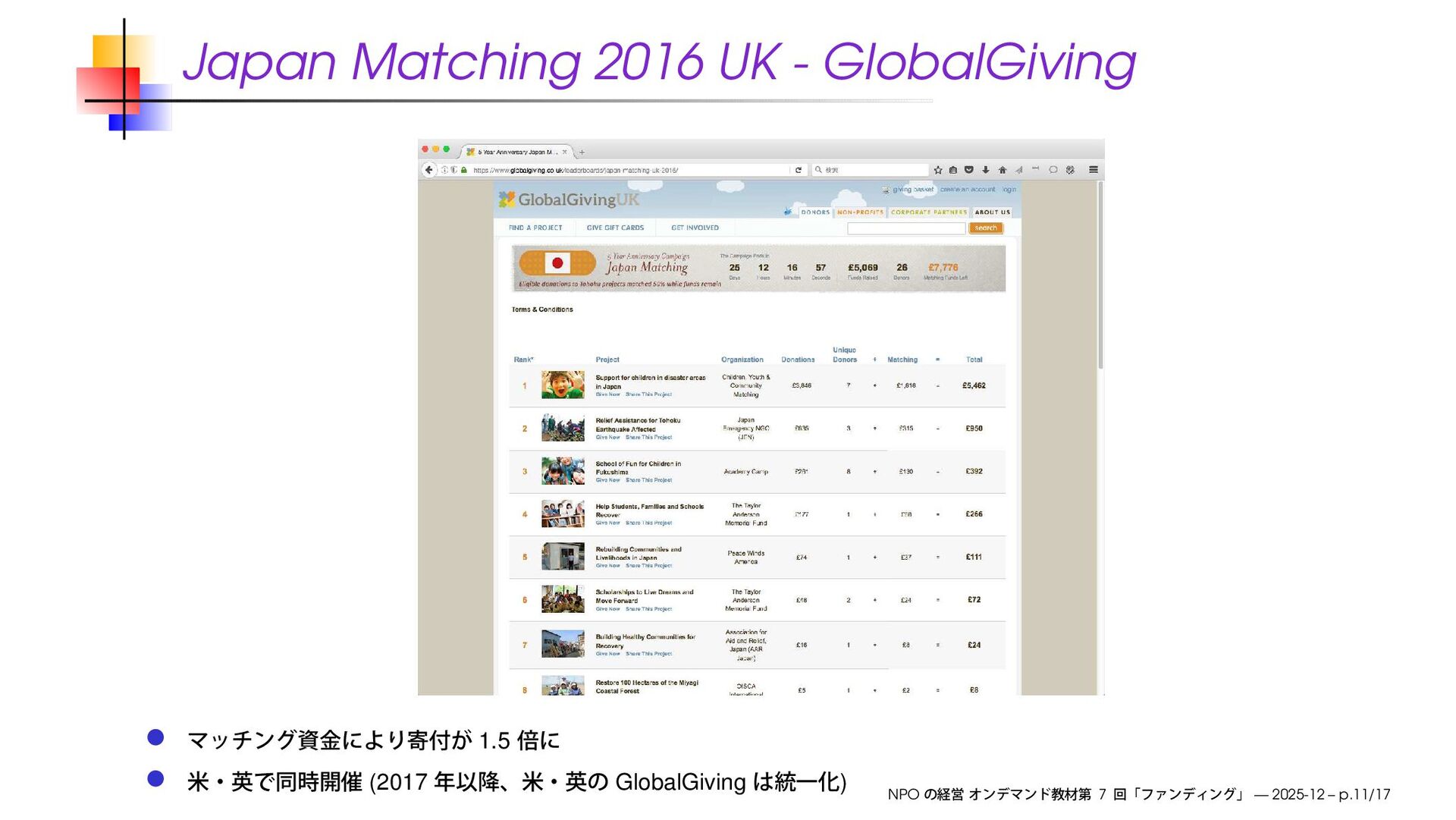 Japan Matching 2016 UK - GlobalGiving 1.5 (2017 GlobalGiving )