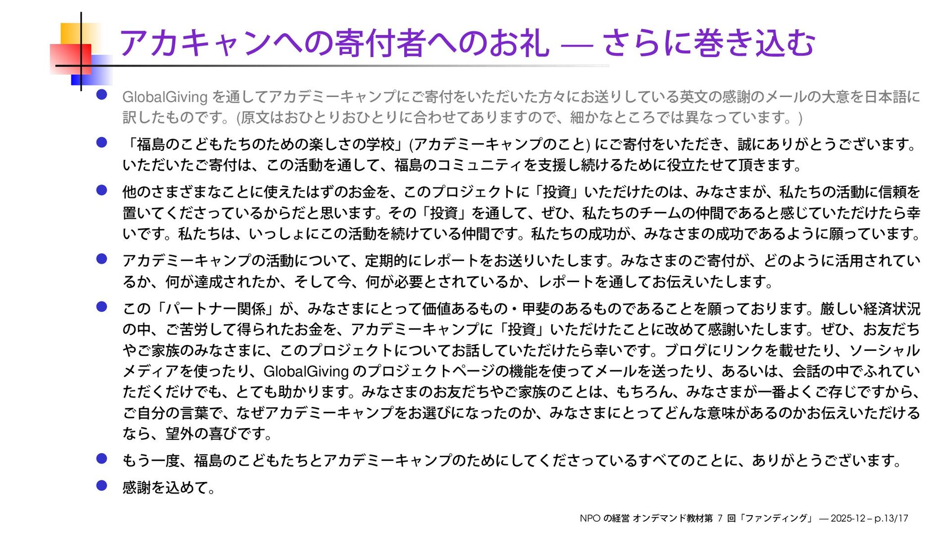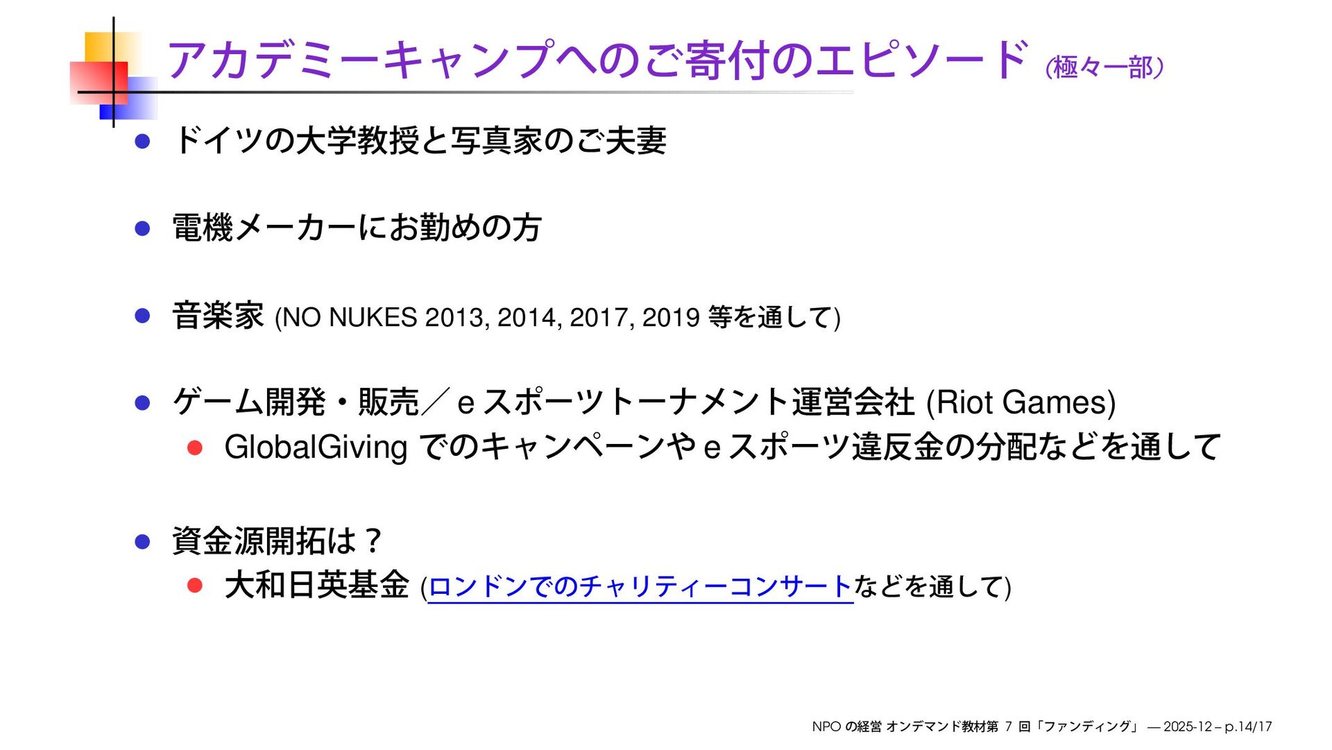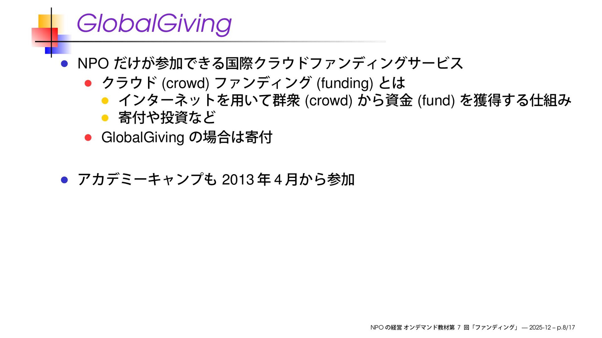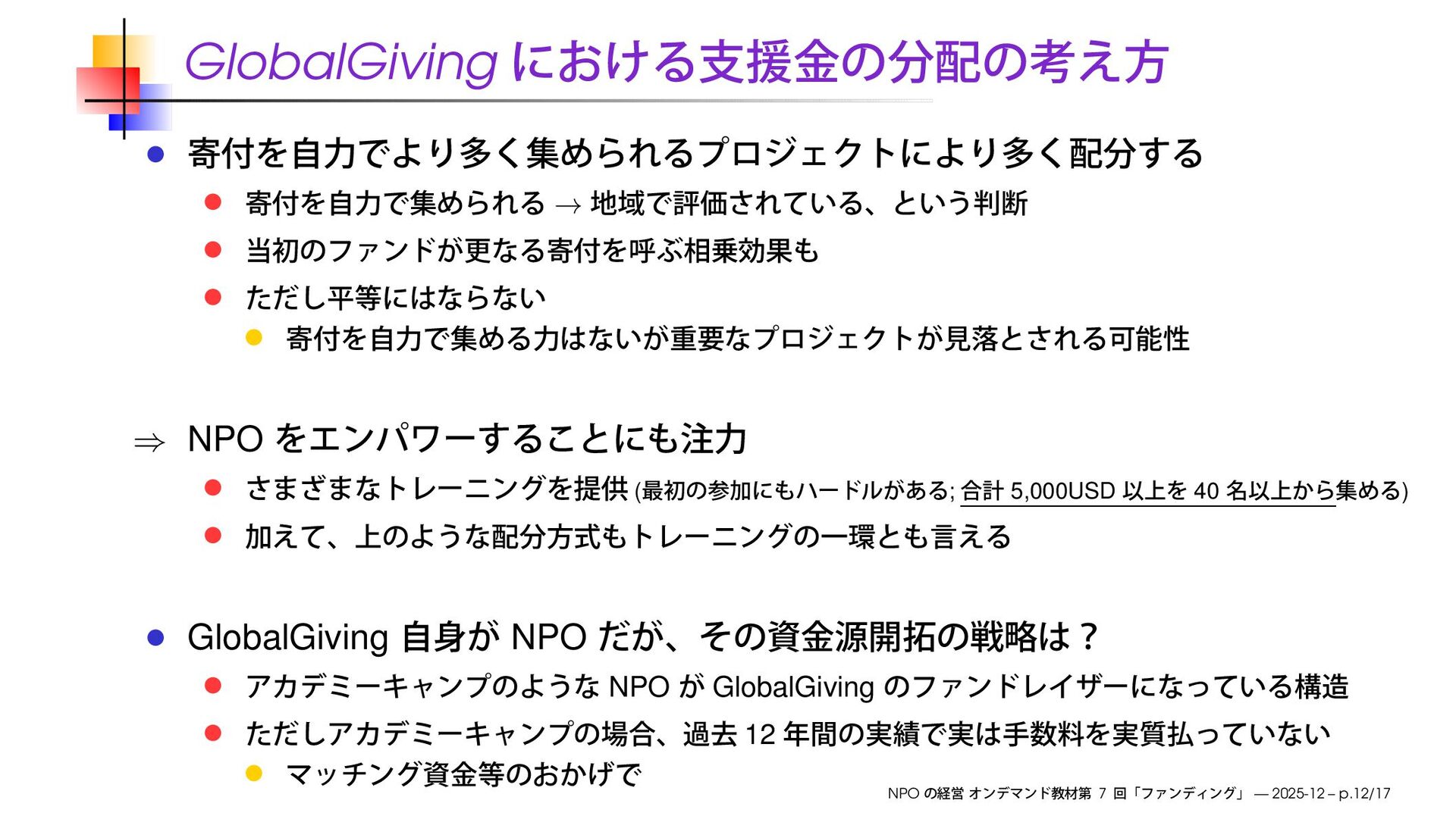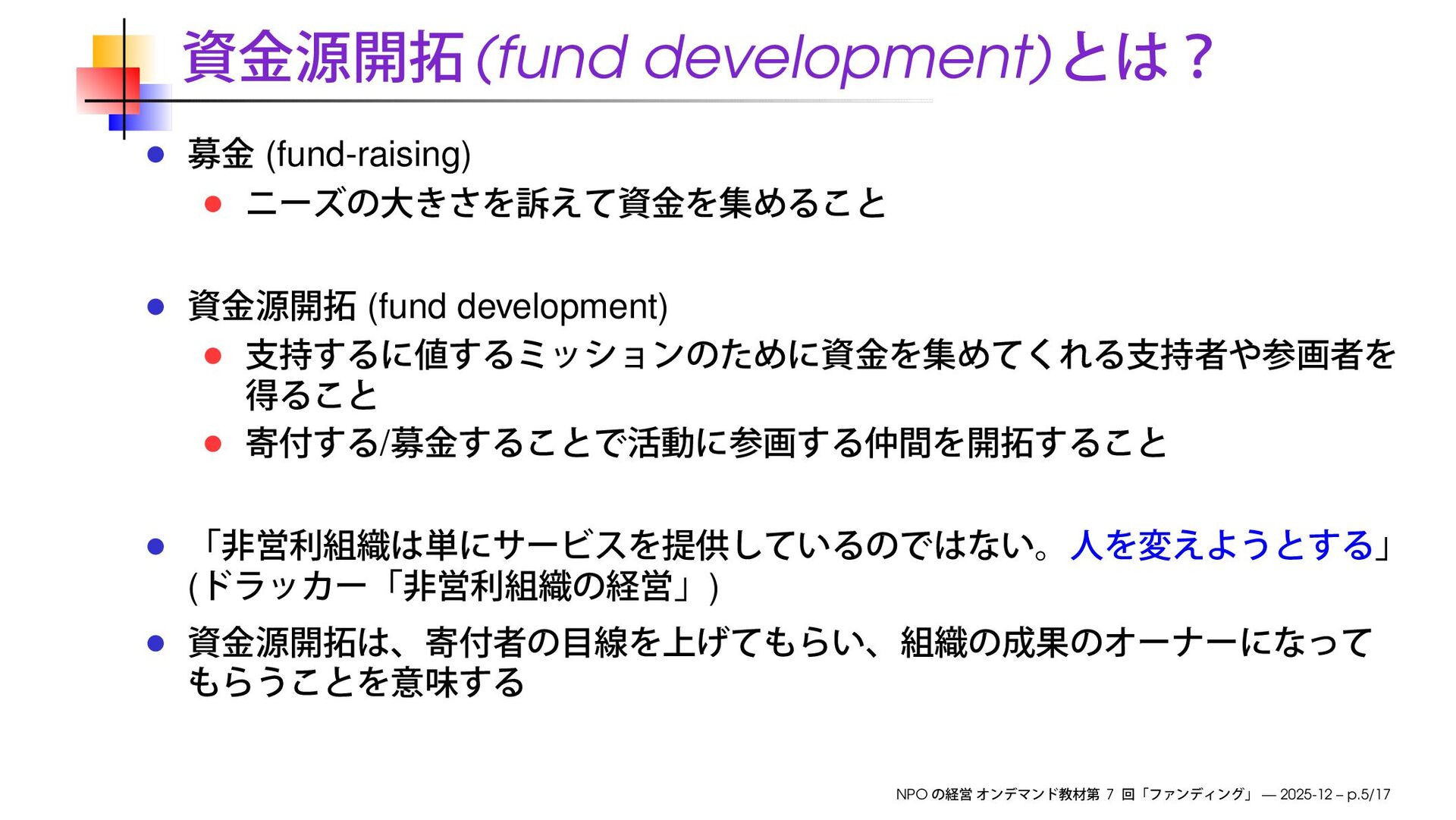 早稲田大学大学院経営管理研究科「NPOの経営」2025 冬のオンデマンド教材 第7回で使用したスライドです。