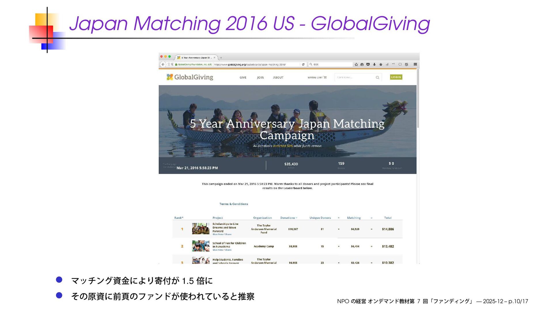 Japan Matching 2016 US - GlobalGiving 1.5 NPO 7 —
