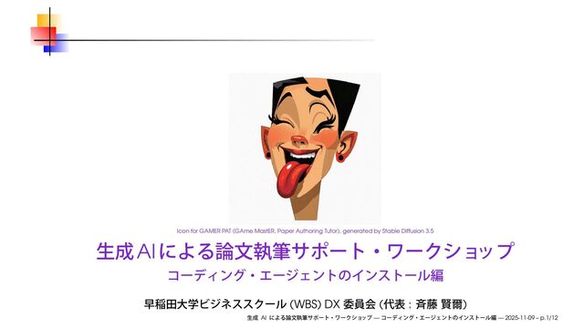 2025年11月9日(日)、オンラインで開催された、早稲田大学ビジネススクール DX 委員会主催「生成AI による論文執筆サポート・ワークショップ」の番外編のスライドです。