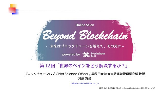 2021年8月16日(月)、オンラインサロン Beyond Blockchain 第12回「世界のペインをどう解決するか?」にて使用したスライドです。