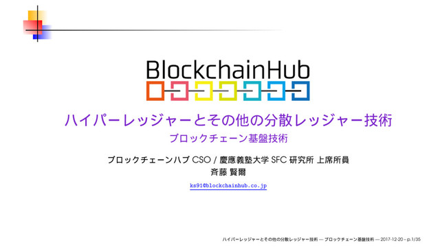 2017年12月20日(水)、ブロックチェーンアカデミー「ハイパーレッジャーとその他の分散レッジャー技術」にて使用したスライドです