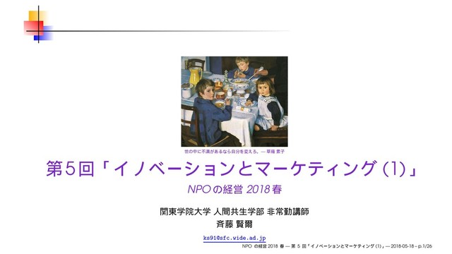 NPOの経営2018春 第5回「イノベーションとマーケティング (1)」 / Innovation and Marketing 1