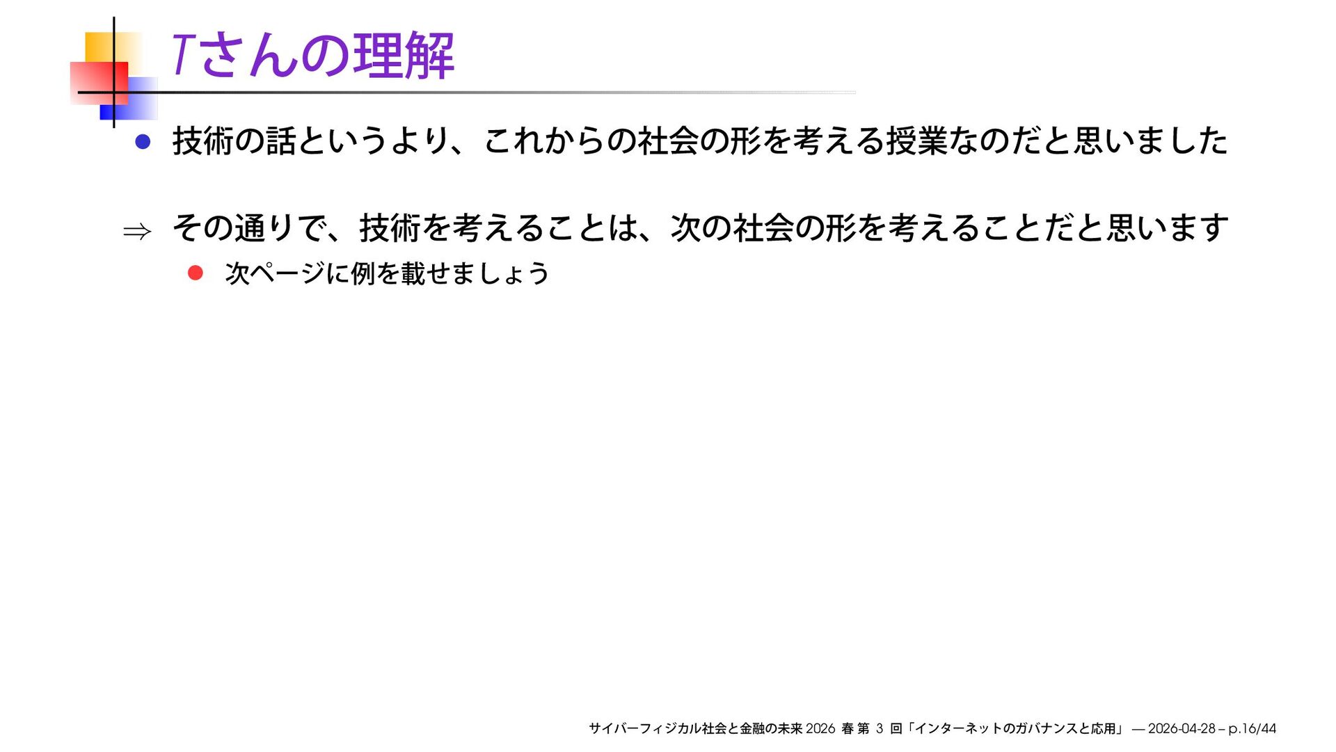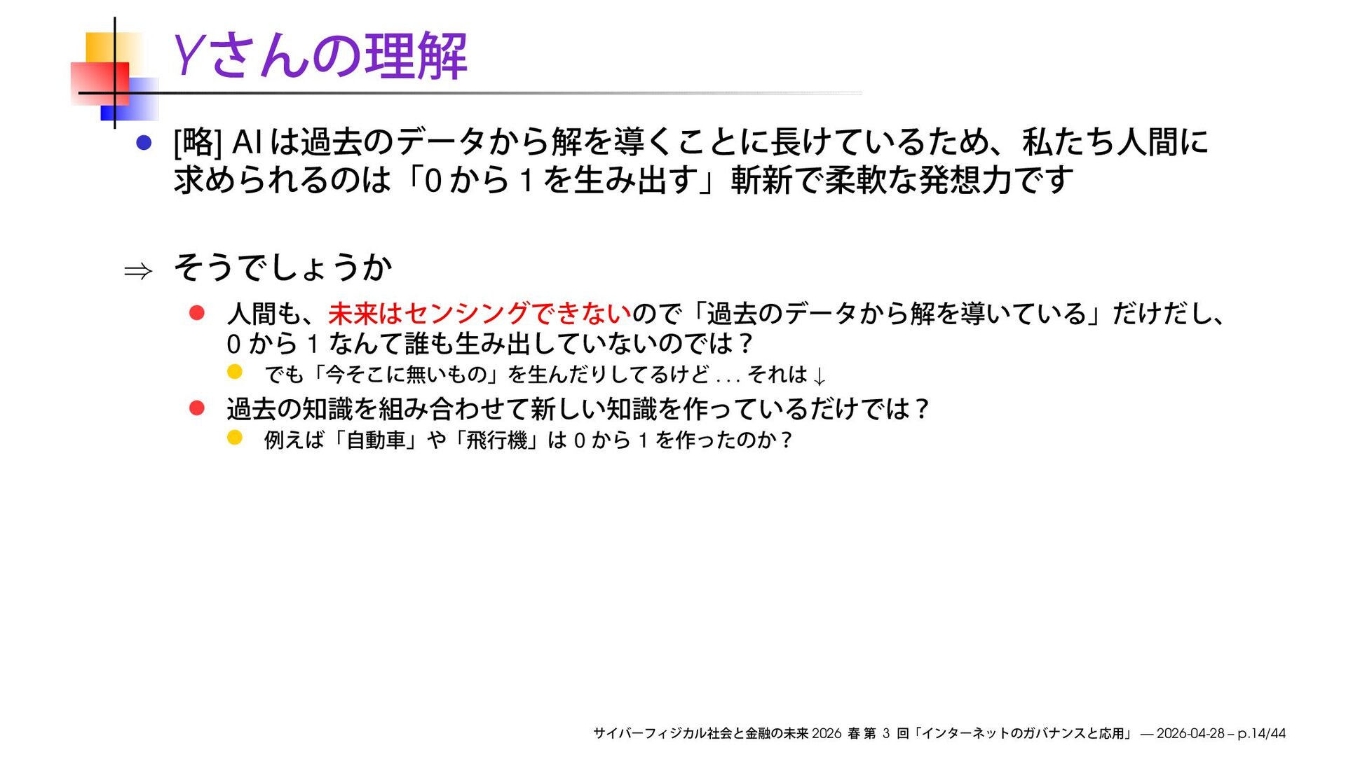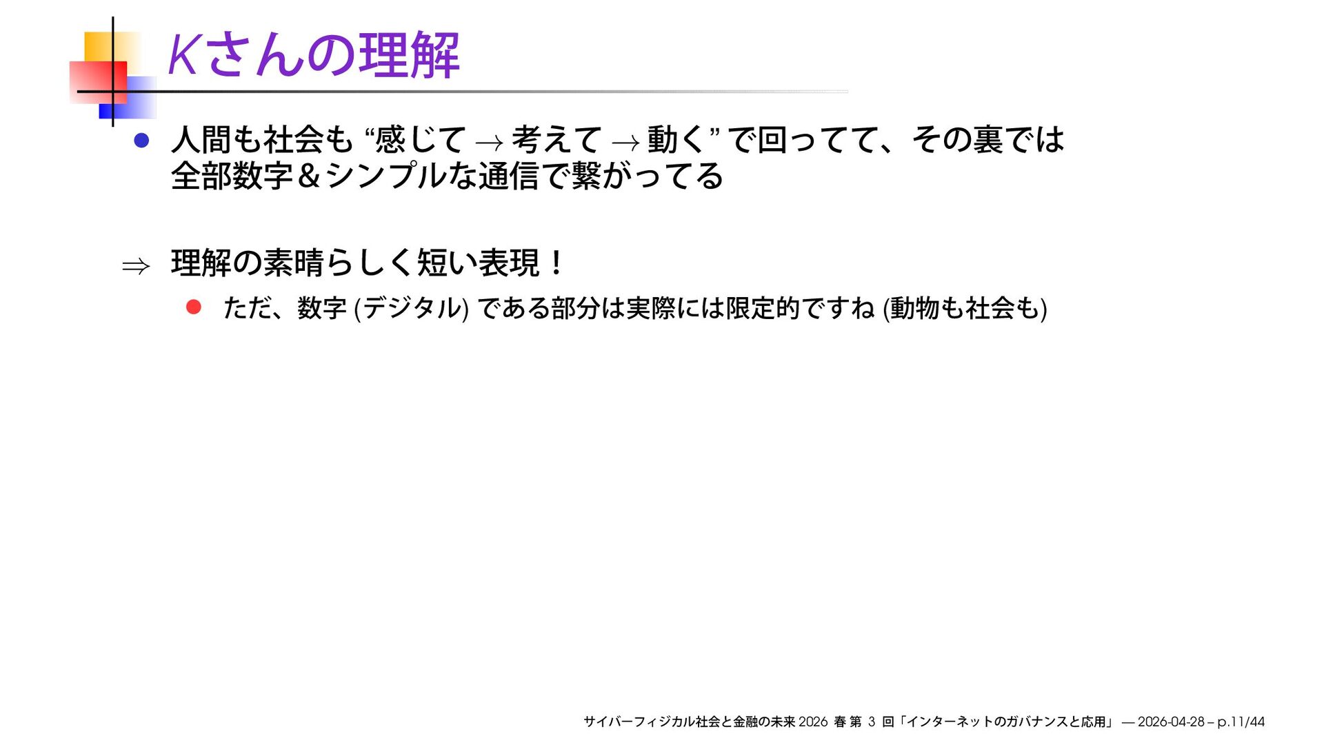 早稲田大学商学部「サイバーフィジカル社会と金融の未来」2026 春の第3回で使用したスライドです。