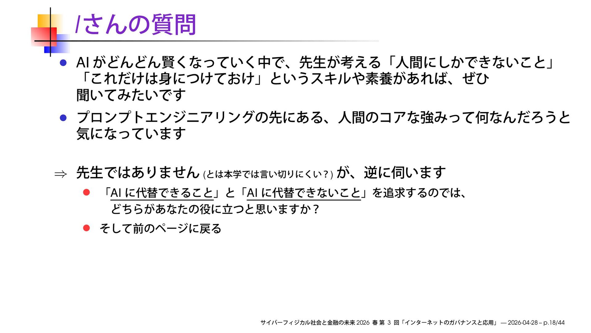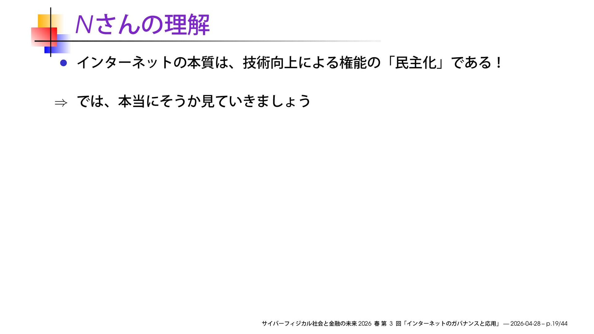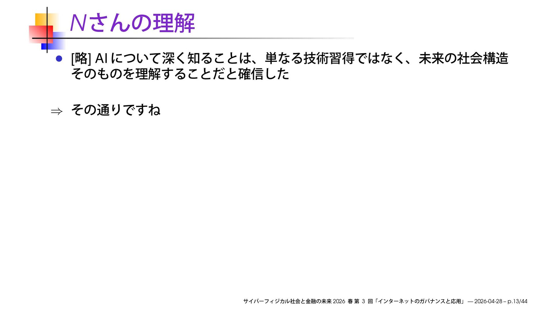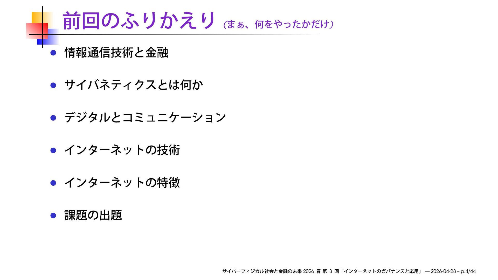 早稲田大学商学部「サイバーフィジカル社会と金融の未来」2026 春の第3回で使用したスライドです。