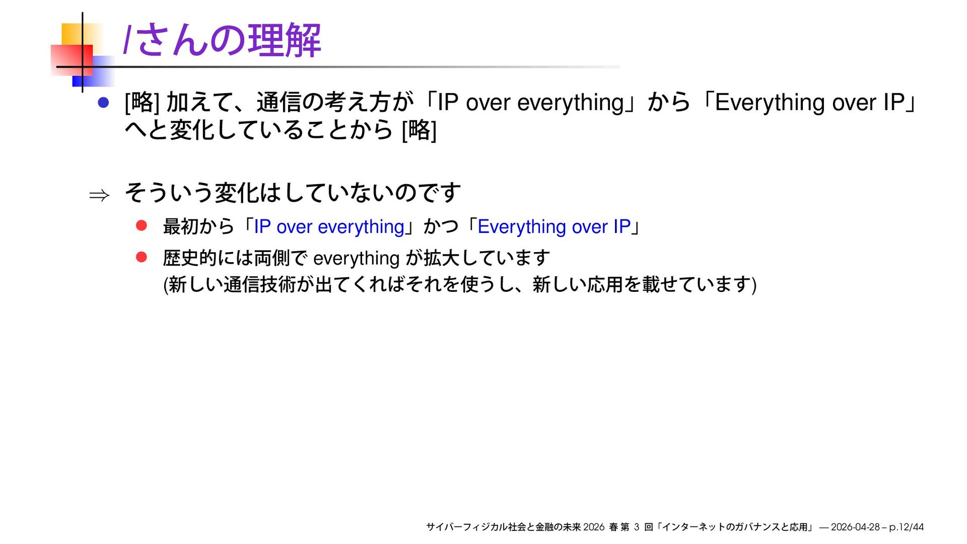 ] ⇒ IP over everything Everything over IP everything ( ) 2026 3 — 2026-04-28 – p.12/44