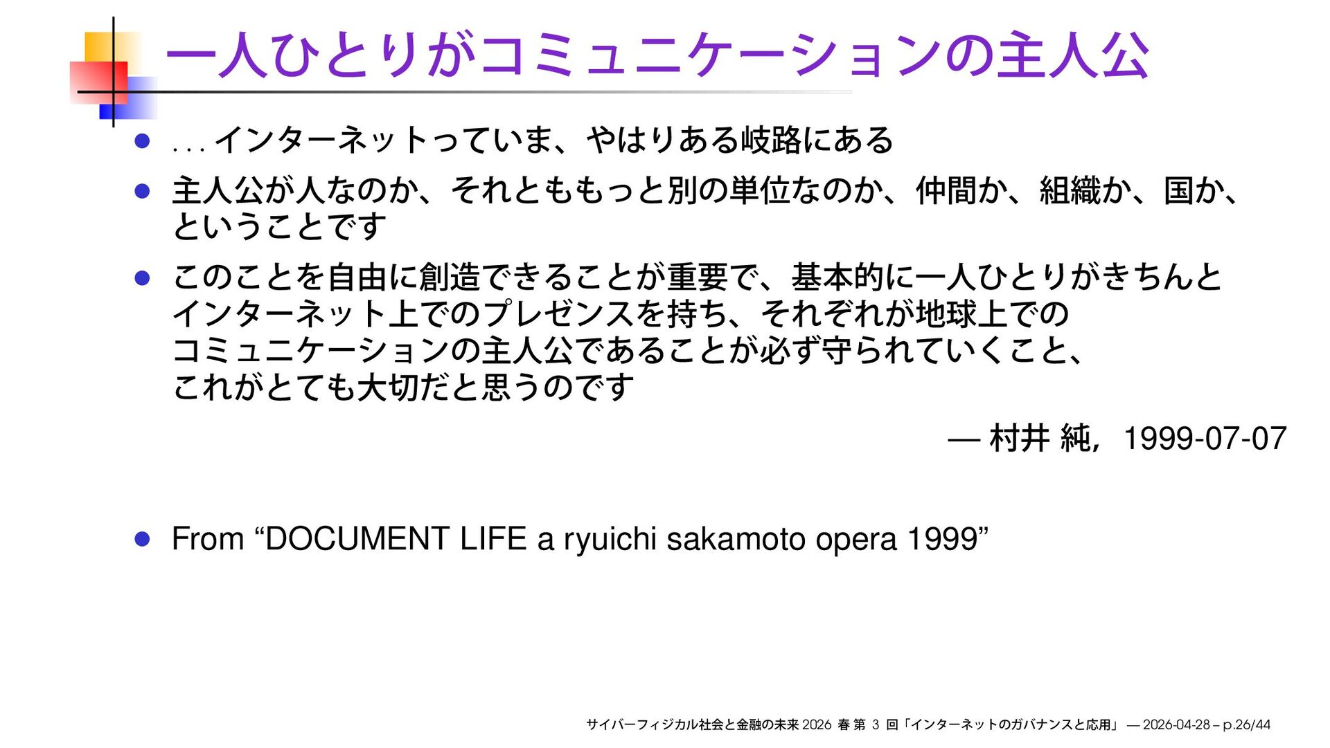 sakamoto opera 1999” 2026 3 — 2026-04-28 – p.26/44