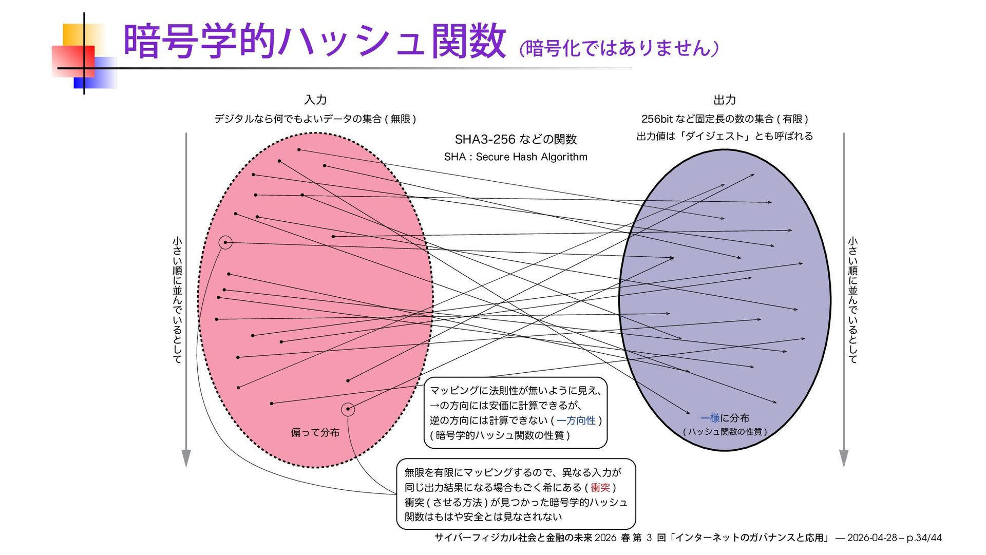 খ ͞ ͍ ॱ ʹ ฒ Μ Ͱ ͍ Δ ͱ ͠ ͯ খ ͞ ͍ ॱ ʹ ฒ Μ Ͱ ͍ Δ ͱ ͠ ͯ 4)"ͳͲͷؔ 4)"4FDVSF)BTI"MHPSJUIN Ұ༷ʹ ϋογϡؔͷੑ࣭ ภͬͯ Ϛοϐϯάʹ๏ଇੑ͕ແ͍Α͏ʹݟ͑ɺ ˠͷํʹ҆ՁʹܭࢉͰ͖Δ͕ɺ ٯͷํʹܭࢉͰ͖ͳ͍ Ұํੑ ҉߸ֶతϋογϡؔͷੑ࣭ ແݶΛ༗ݶʹϚοϐϯά͢ΔͷͰɺҟͳΔೖྗ͕ ಉ͡ग़ྗ݁ՌʹͳΔ߹͘͝رʹ͋Δ িಥ িಥ ͤ͞Δํ๏ ͕ݟ͔ͭͬͨ҉߸ֶతϋογϡ ؔ҆શͱݟͳ͞Εͳ͍ 2026 3 — 2026-04-28 – p.34/44