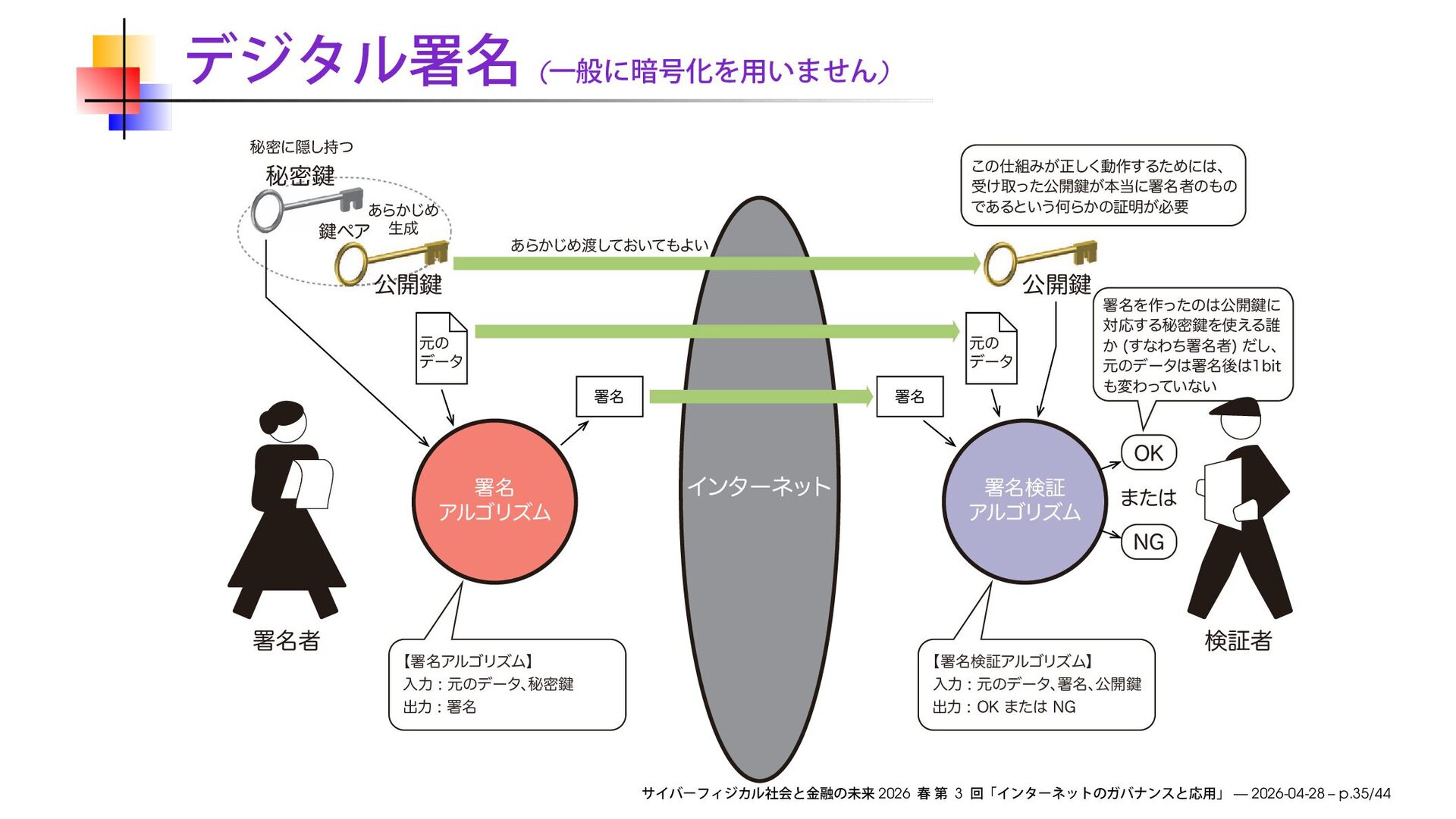 ͔ ͢ͳΘͪॺ໊ऀ ͩ͠ɺ ݩͷσʔλॺ໊ޙCJU มΘͬ ͍ͯͳ͍ ͜ͷΈ͕ਖ਼͘͠ಈ࡞͢ΔͨΊʹɺ ड͚औͬͨެ։伴͕ຊʹॺ໊ऀͷͷ Ͱ͋Δͱ͍͏ԿΒ͔ͷূ໌͕ඞཁ ʲॺ໊ΞϧΰϦζϜʳ ೖྗݩͷσʔλɺ ൿີ伴 ग़ྗॺ໊ ʲॺ໊ݕূΞϧΰϦζϜʳ ೖྗݩͷσʔλɺ ॺ໊ɺ ެ։伴 ग़ྗ0,·ͨ/( ެ։伴 ॺ໊ऀ ॺ໊ ΞϧΰϦζϜ ॺ໊ݕূ ΞϧΰϦζϜ 0, ·ͨ /( Πϯλʔωοτ ݕূऀ ެ ެ։ ։伴 伴 ެ։ ެ։伴 ެ ެ։ ։伴 伴 ݩͷ σʔλ ݩͷ σʔλ ॺ໊ ॺ໊ 2026 3 — 2026-04-28 – p.35/44