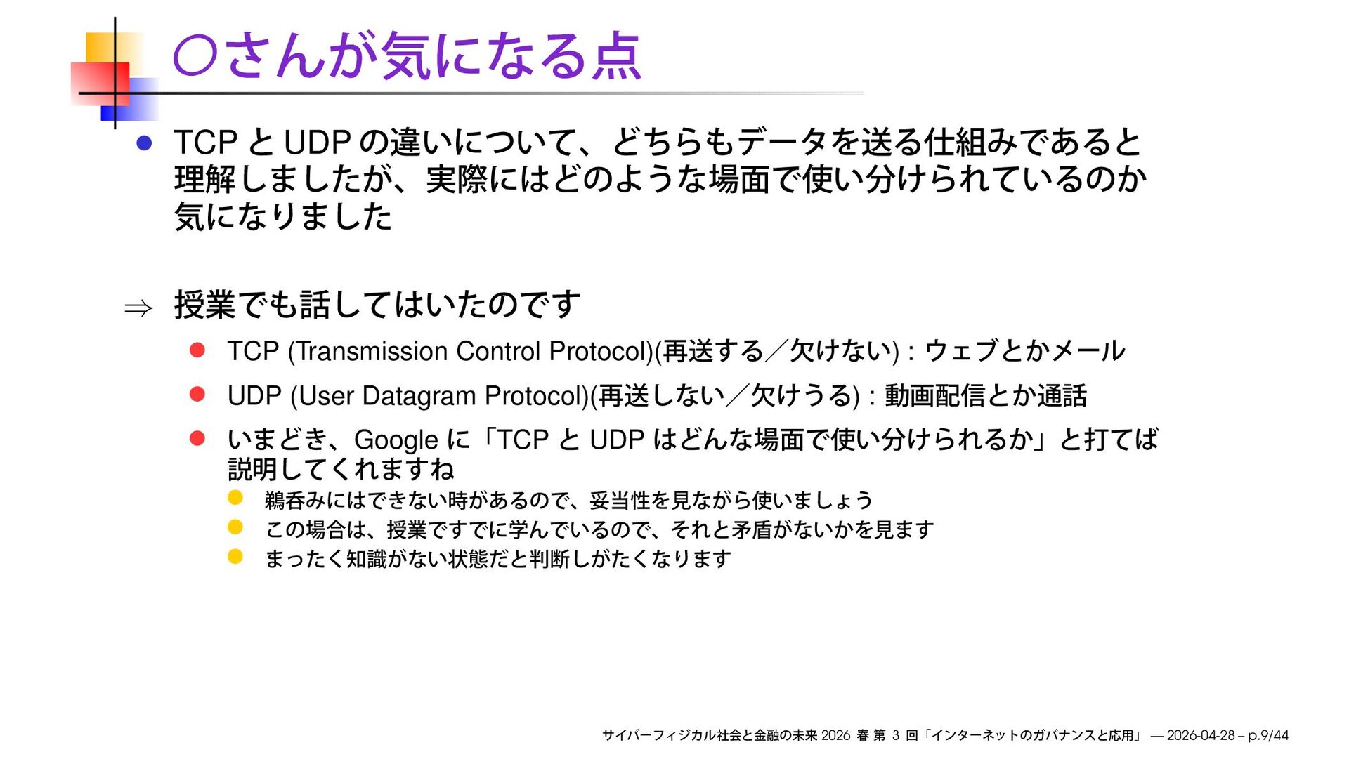 UDP (User Datagram Protocol)( ) : Google TCP UDP 2026 3 — 2026-04-28 – p.9/44