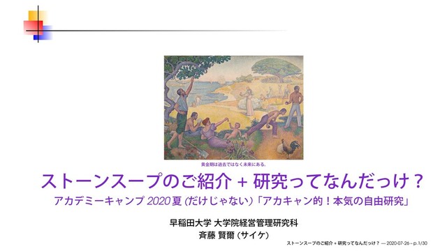 2020年7月26日(日)、オンラインで行われたアカデミーキャンプ 2020夏(だけじゃない)「アカキャン的!本気の自由研究」第1回にて使用したスライドです。