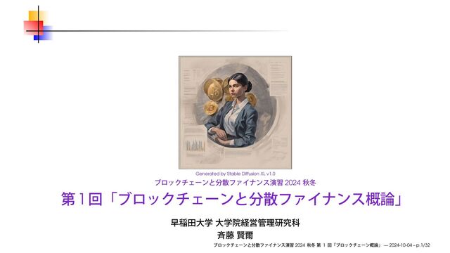 早稲田大学大学院経営管理研究科「ブロックチェーンと分散ファイナンス演習」2024秋 第1回にて使用したスライドです。