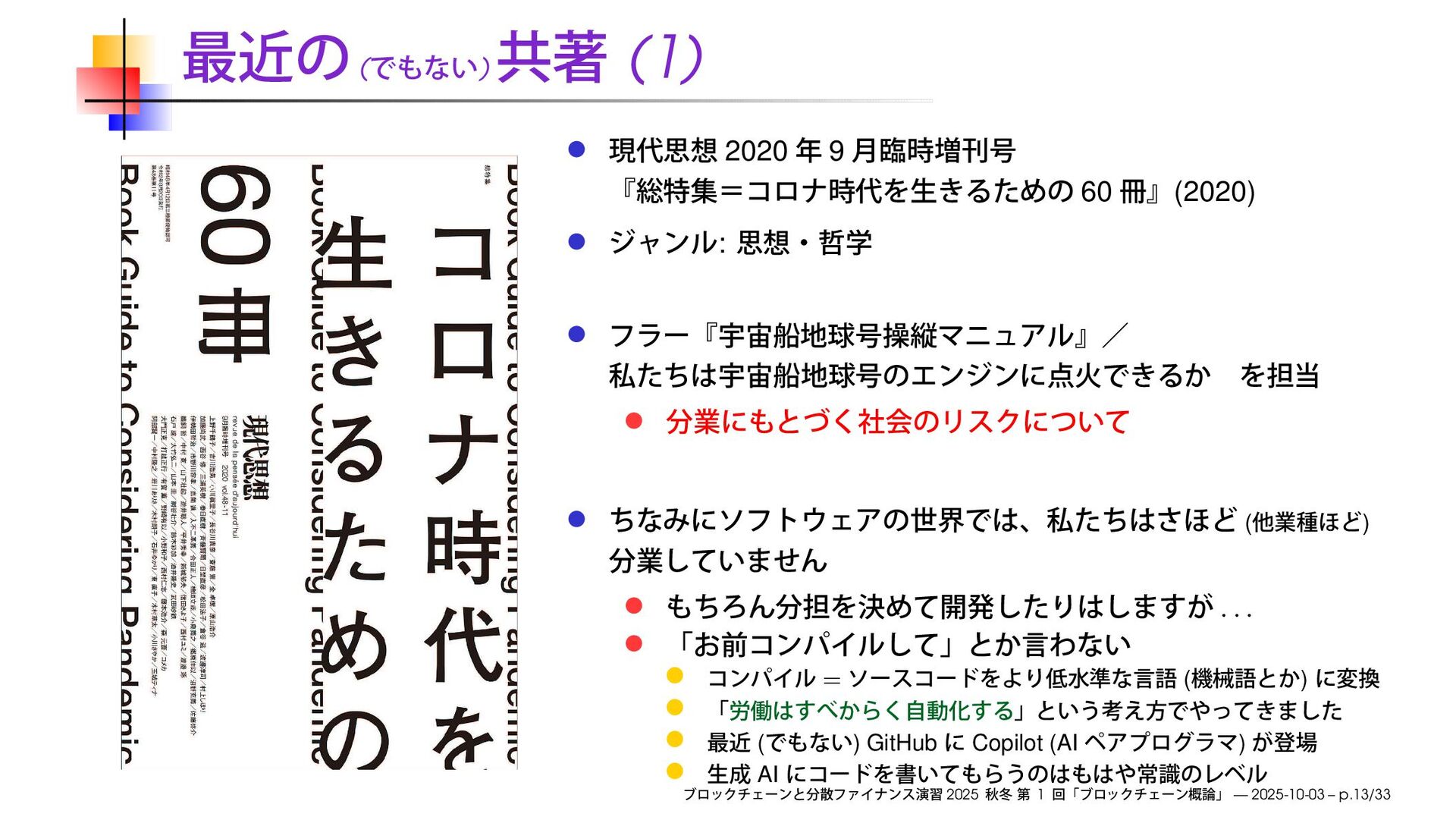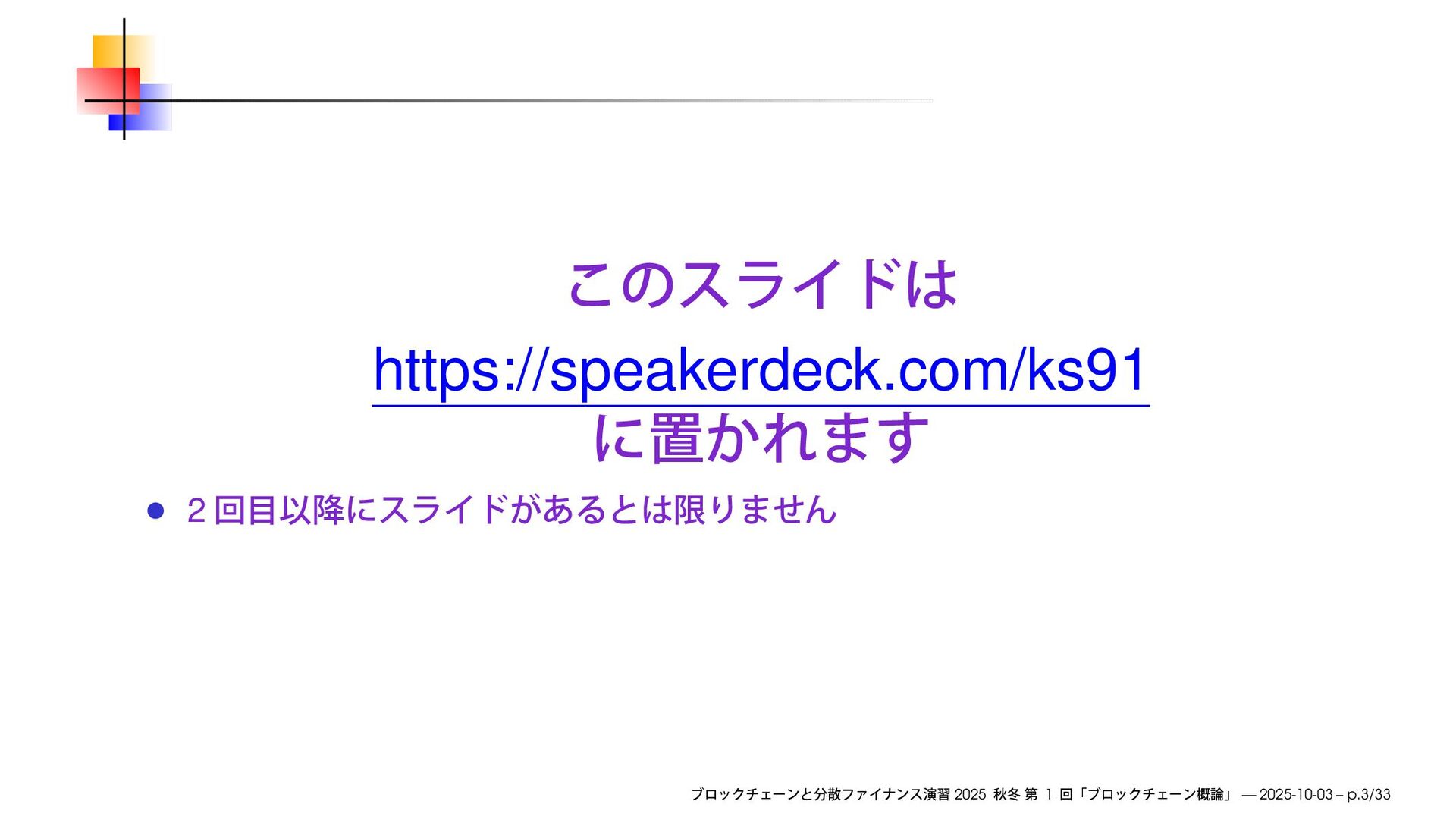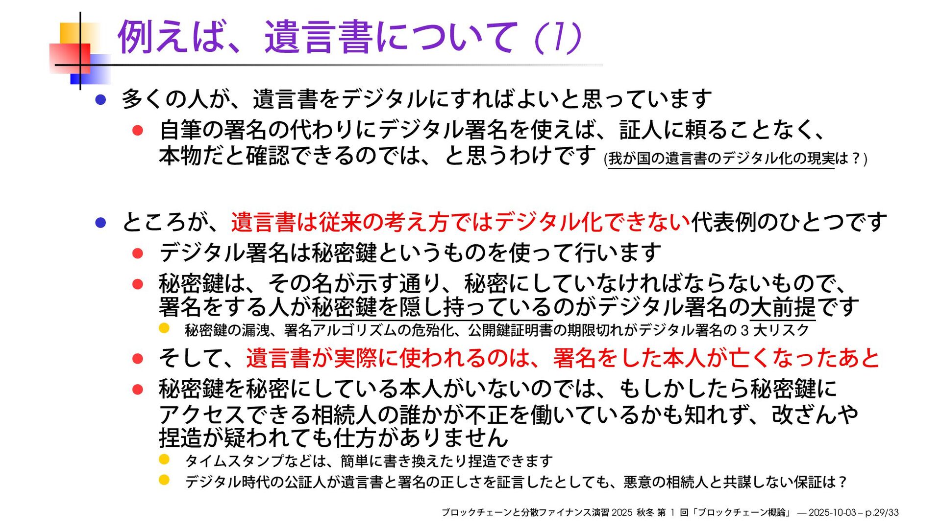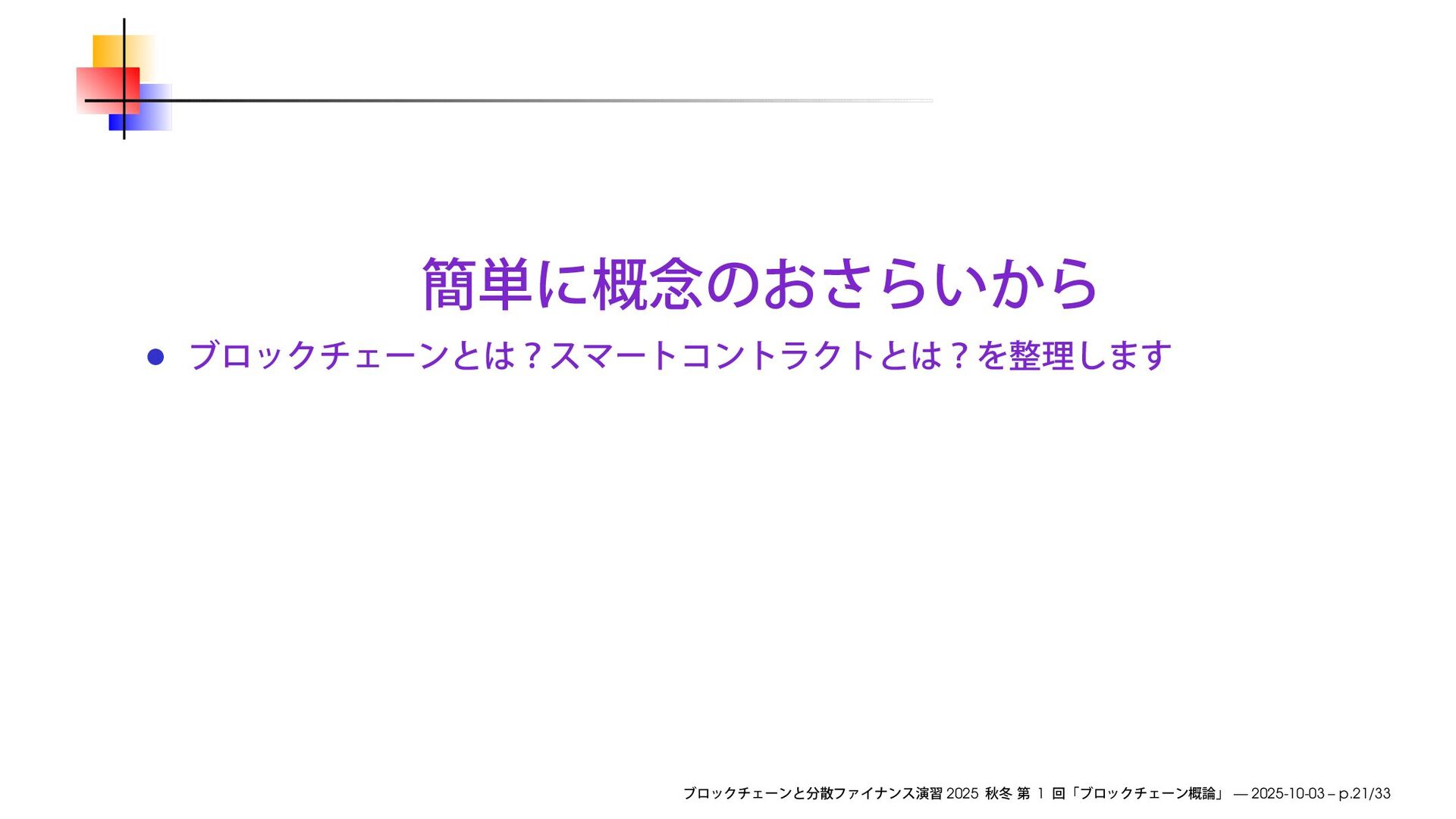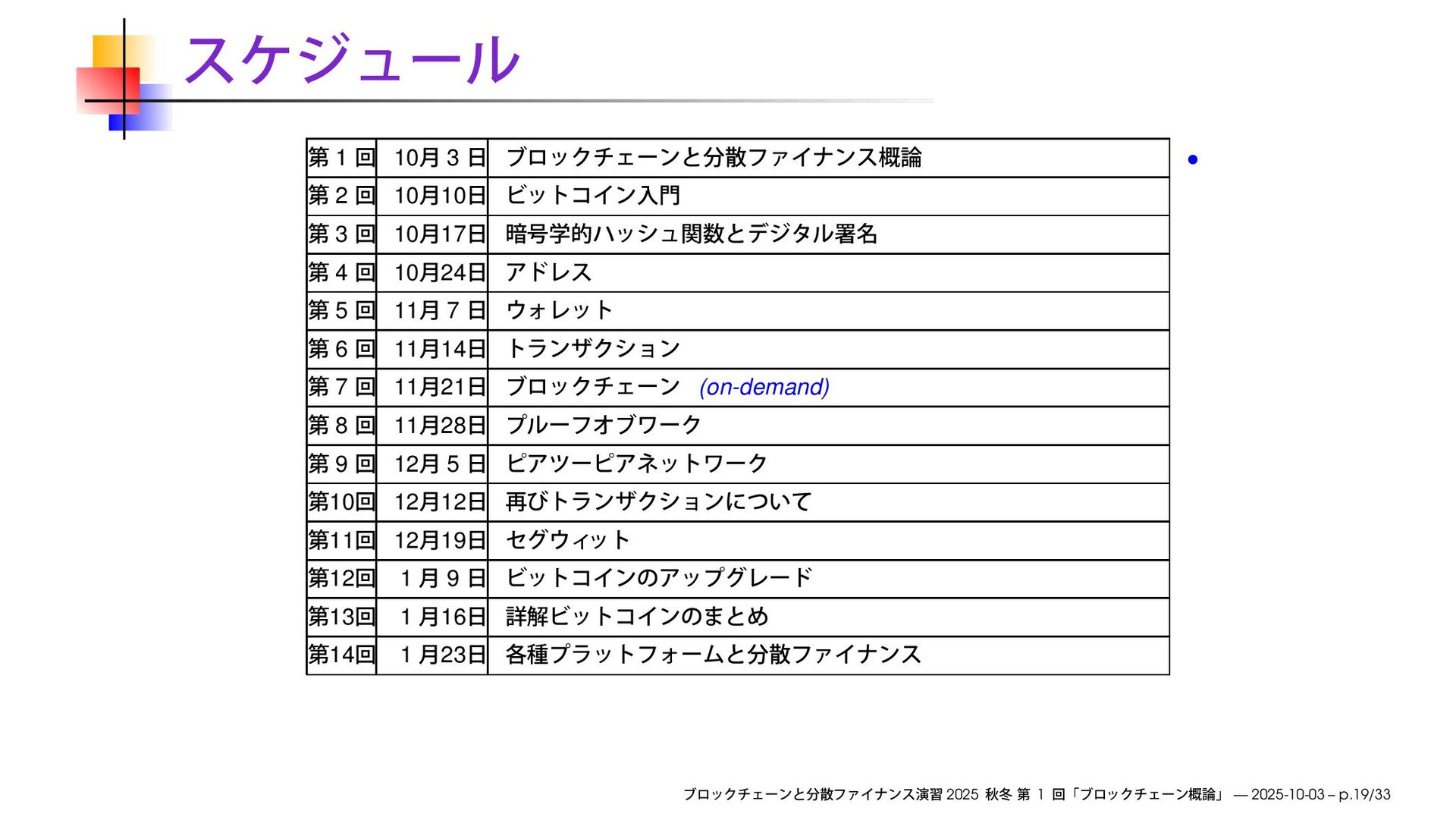 早稲田大学大学院経営管理研究科「ブロックチェーンと分散ファイナンス演習」2025 秋の第1回で使用したスライドです。