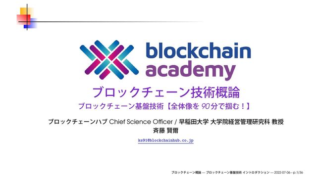 2022年7月6日(水)、ブロックチェーンハブ主催のブロックチェーンアカデミーにて使用したスライドです。