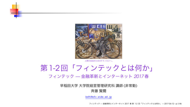 早稲田大学 大学院経営管理研究科 2017年度春学期授業「フィンテック ─ 金融革新とインターネット」第1-2回のスライドです。2017年6月12日(月)に使用しました。