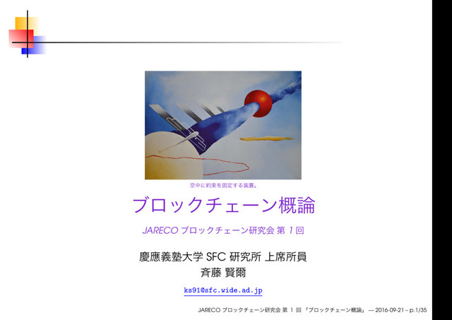) ( ) “A timestamp server works by taking a hash of a block of items to be timestamped and widely publishing the hash, such as in a newspaper or Usenet post” “To implement a distributed timestamp server on a peer-to-peer basis, we will need to use a proof-of-work system similar to Adam Back’s Hashcash, rather than newspaper or Usenet posts” – Satoshi Nakamoto (2008) JARECO 1 — 2016-09-21 – p.5/35