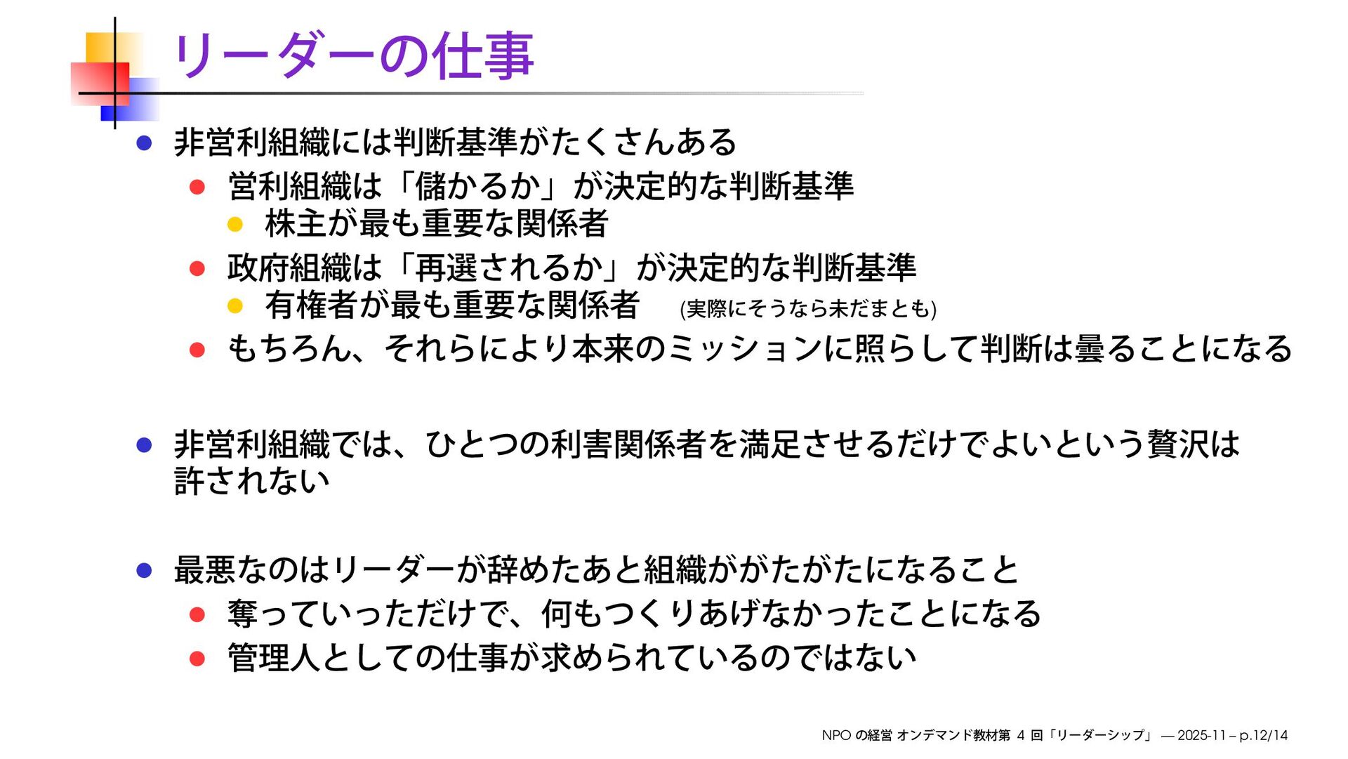 早稲田大学大学院経営管理研究科「NPOの経営」2025 冬のオンデマンド教材 第4回で使用したスライドです。