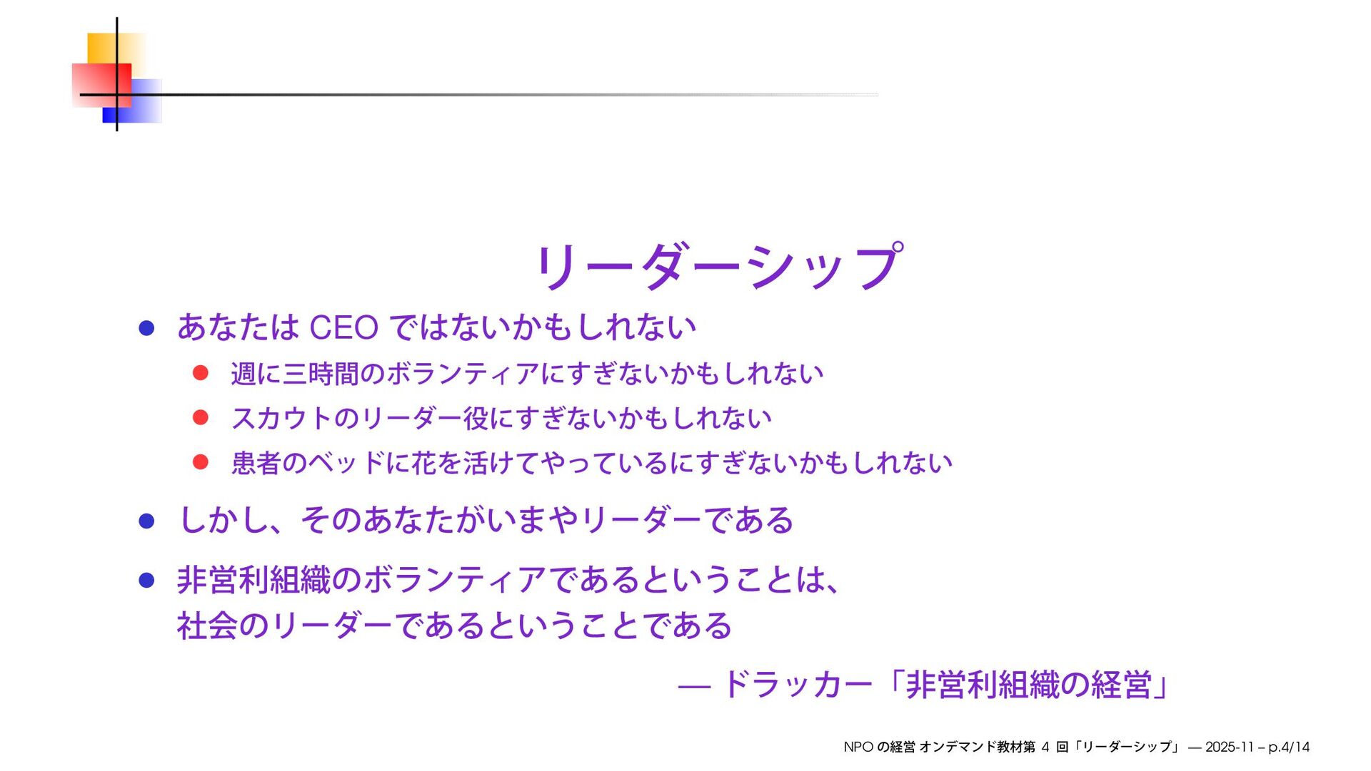 https://speakerdeck.com/ks91/collections/managing-the-npo-2025-winter NPO 4 — 2025-11 – p.2/14
