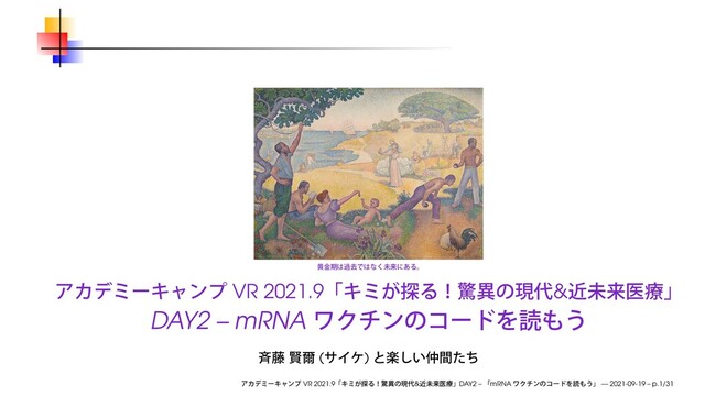 5νϛϯ $γτγϯ : Wikipedia ( ) jurassic park velociraptor dna . . . CTT GAC AAA GTT GAG . . . DNA DNA 3 A T G C G C 1 2 VR 2021.9 & DAY2 – mRNA — 2021-09-19 – p.8/31