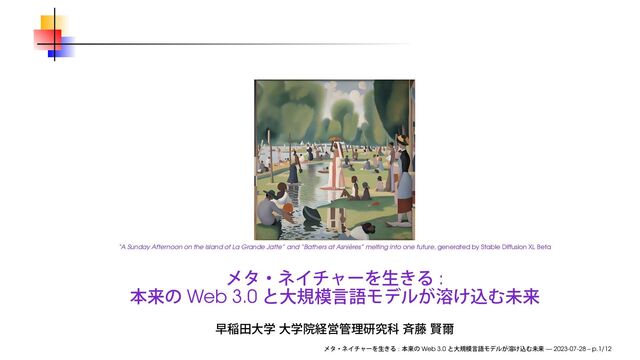 and “Bathers at Asni` eres” melting into one future, generated by Stable Diffusion XL Beta : Web 3.0 : Web 3.0 — 2023-07-28 – p.1/12