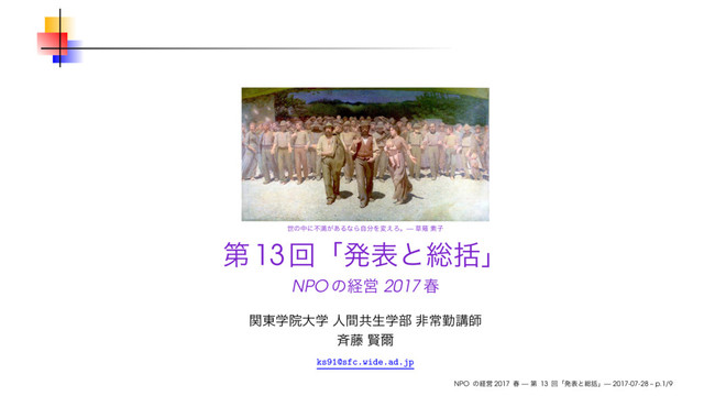 NPO の経営 2017春 第13回「発表と総括」 / Managing an NPO - P...