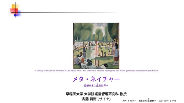 and “Bathers at Asni` eres” melting into one future, generated by Stable Diffusion XL Beta ( ) — — 2024-06-08 – p.1/13
