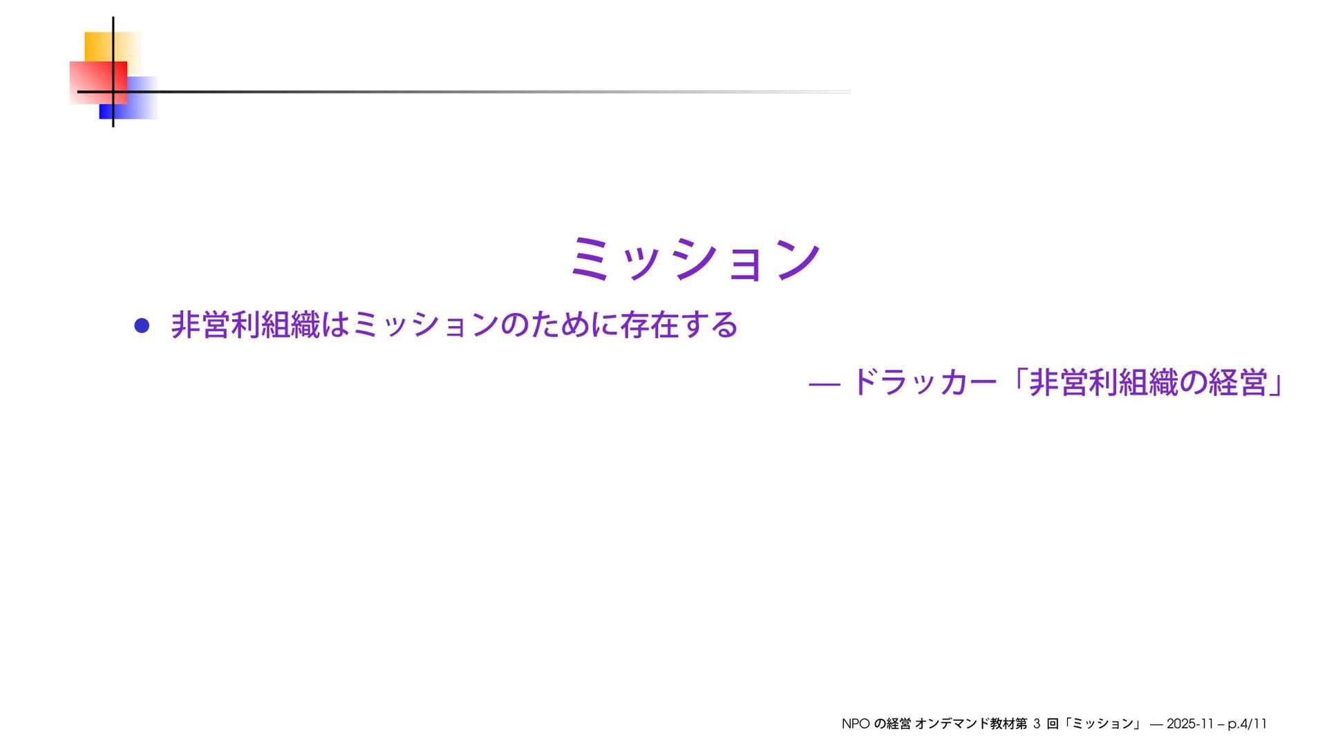 https://speakerdeck.com/ks91/collections/managing-the-npo-2025-winter NPO 3 — 2025-11 – p.2/11