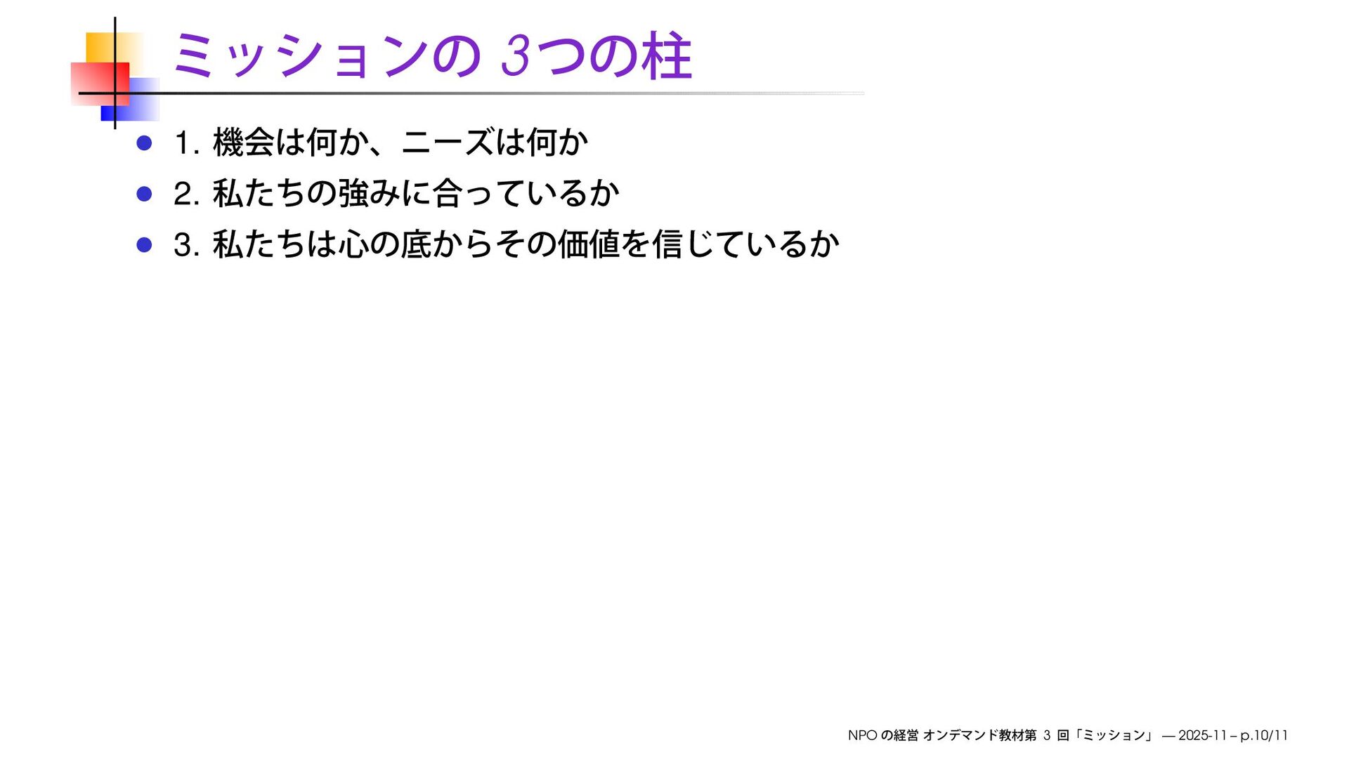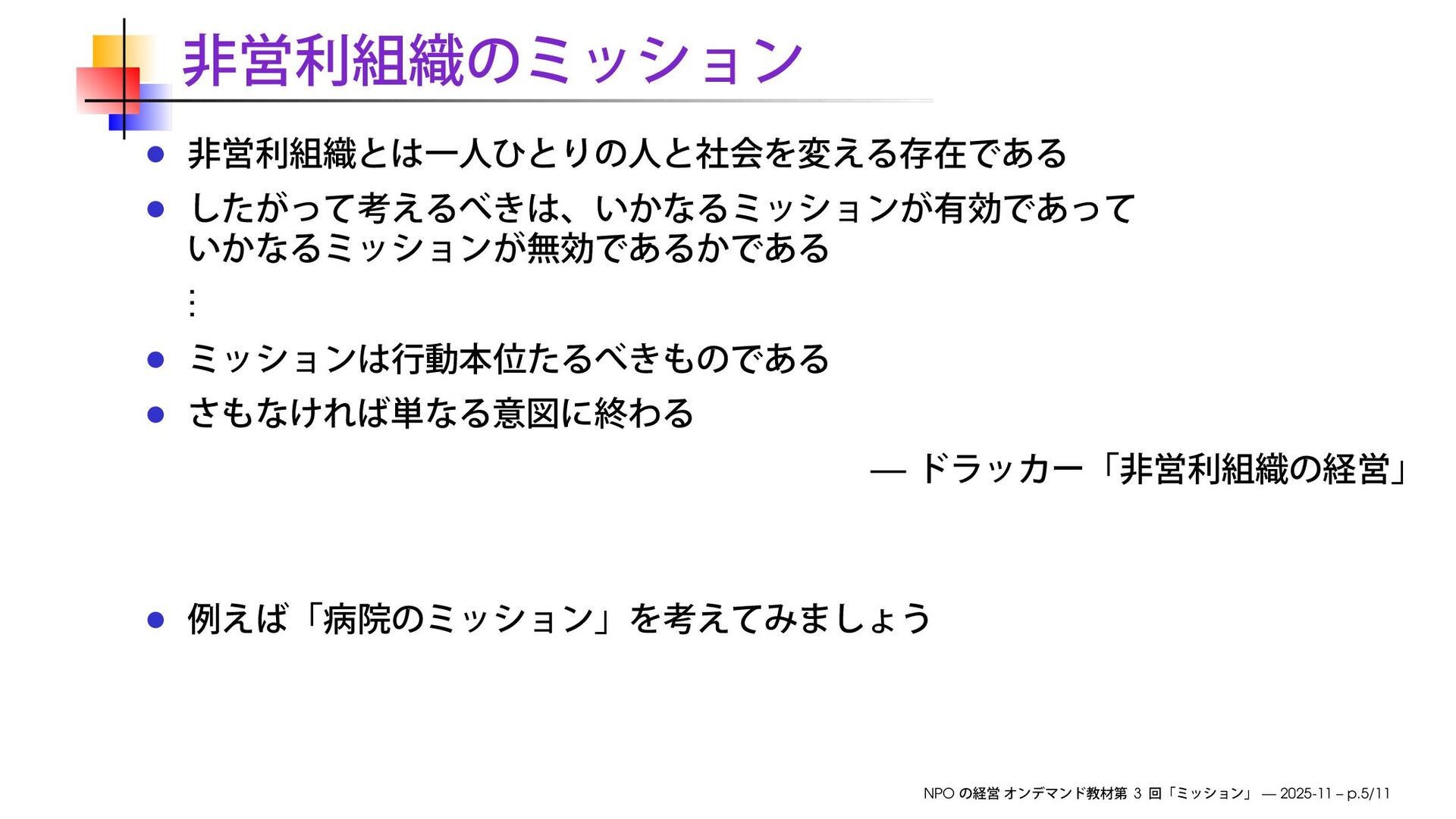 早稲田大学大学院経営管理研究科「NPOの経営」2025 冬のオンデマンド教材 第3回で使用したスライドです。