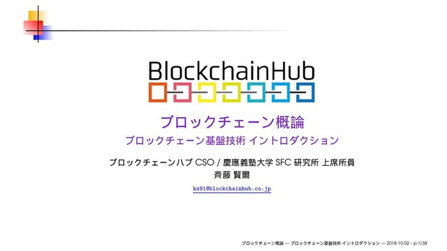 2018年10月2日(火)、ブロックチェーンハブ主催で開催されたブロックチェーンアカデミー「ブロックチェーン概論」にて使用したスライドです。