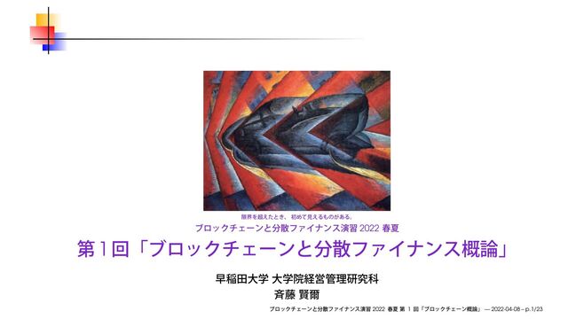 2022年4月8日(金)、早稲田大学 大学院経営管理研究科「ブロックチェーンと分散ファイナンス演習」で使用したスライドです。