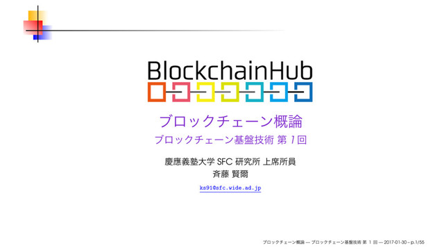 : ) ( ) “A timestamp server works by taking a hash of a block of items to be timestamped and widely publishing the hash, such as in a newspaper or Usenet post” “To implement a distributed timestamp server on a peer-to-peer basis, we will need to use a proof-of-work system similar to Adam Back’s Hashcash, rather than newspaper or Usenet posts” — Satoshi Nakamoto (2008) — 1 — 2017-01-30 – p.6/55