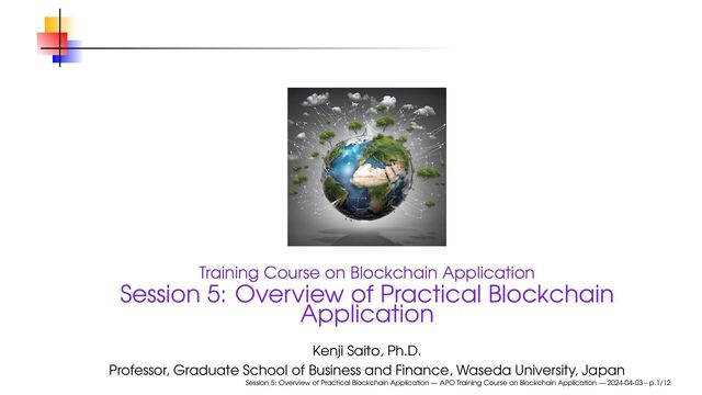 Blockchain Application Kenji Saito, Ph.D. Professor, Graduate School of Business and Finance, Waseda University, Japan Session 5: Overview of Practical Blockchain Application — APO Training Course on Blockchain Application — 2024-04-03 – p.1/12