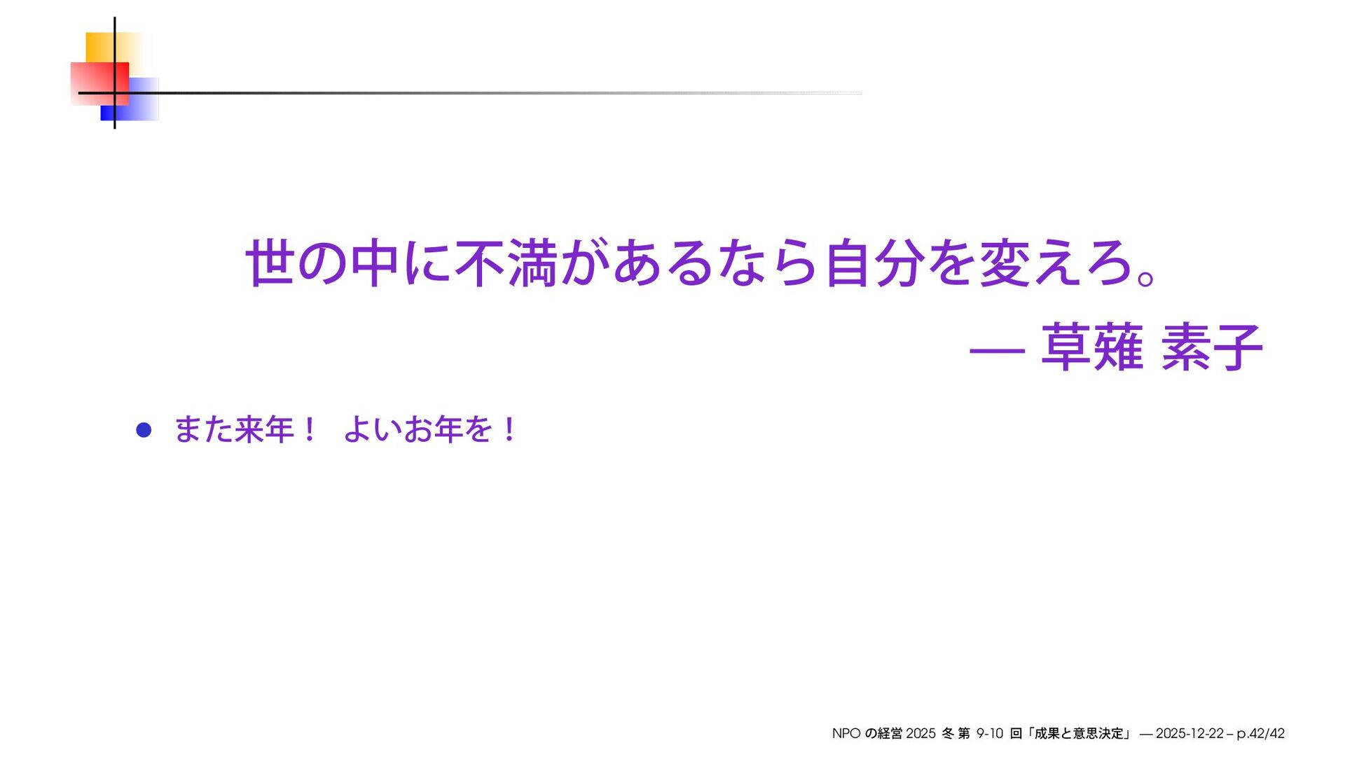 https://speakerdeck.com/ks91/collections/managing-the-npo-2025-winter 2025 NPO 2025 9-10 — 2025-12-22 – p.2/42
