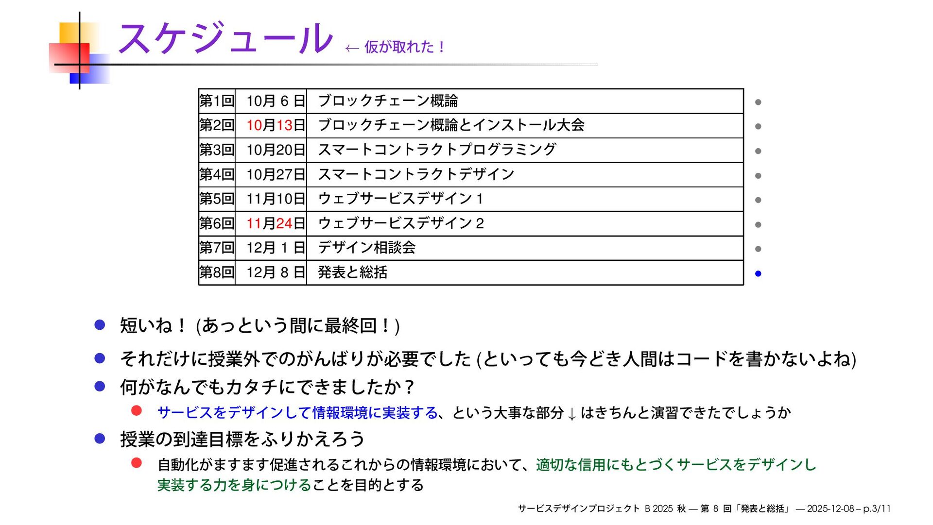 10 20 • 4 10 27 • 5 11 10 1 • 6 11 24 2 • 7 12 1 • 8 12 8 • ( ) ( ) ↓ B 2025 — 8 — 2025-12-08 – p.3/11