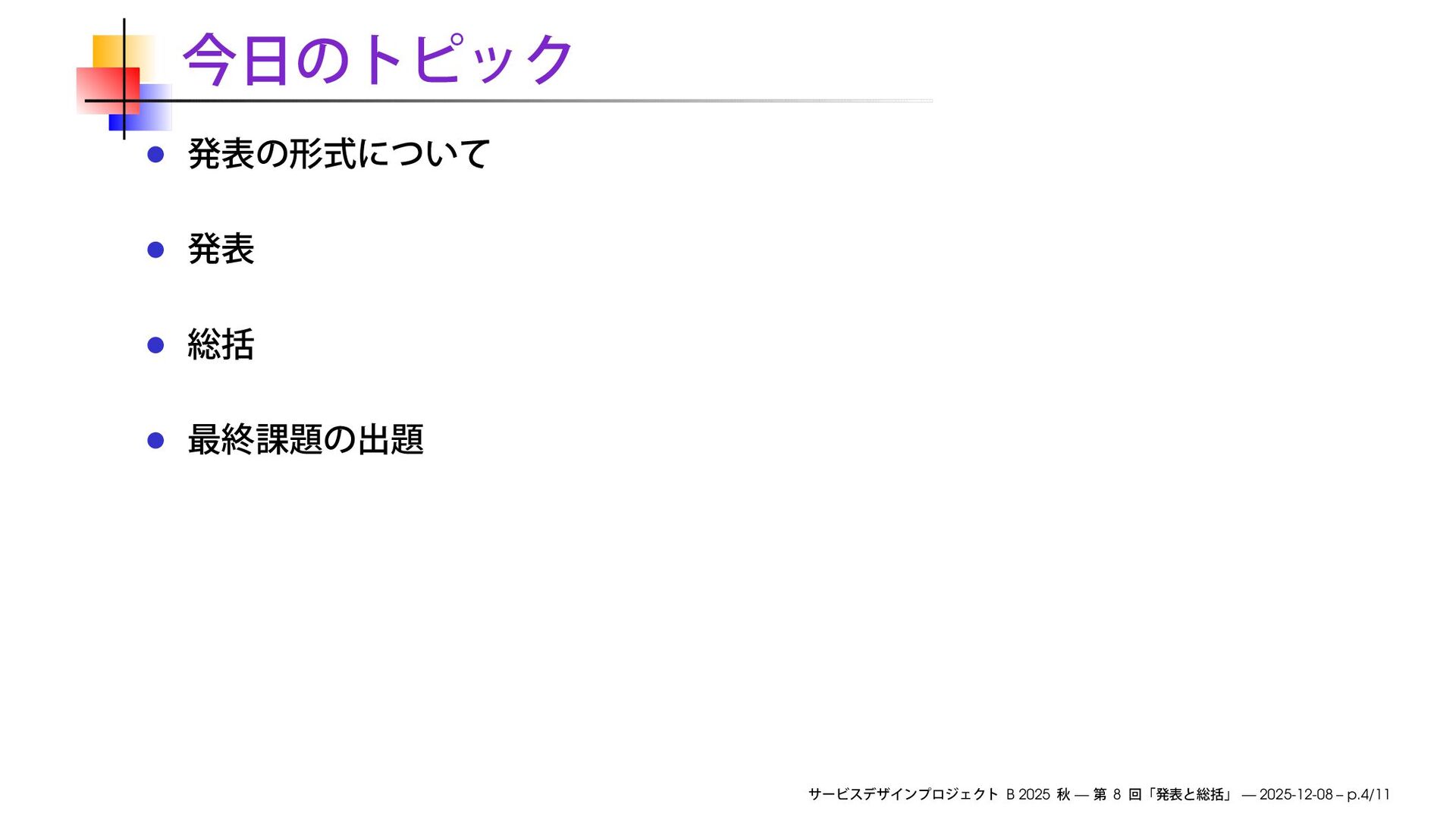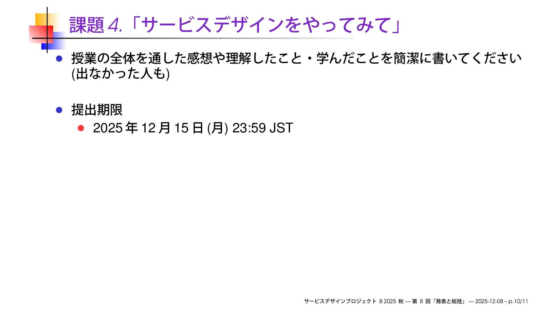 慶應義塾大学大学院メディアデザイン研究科「サービスデザインプロジェクトB」2025秋 第8回にて使用したスライドです。