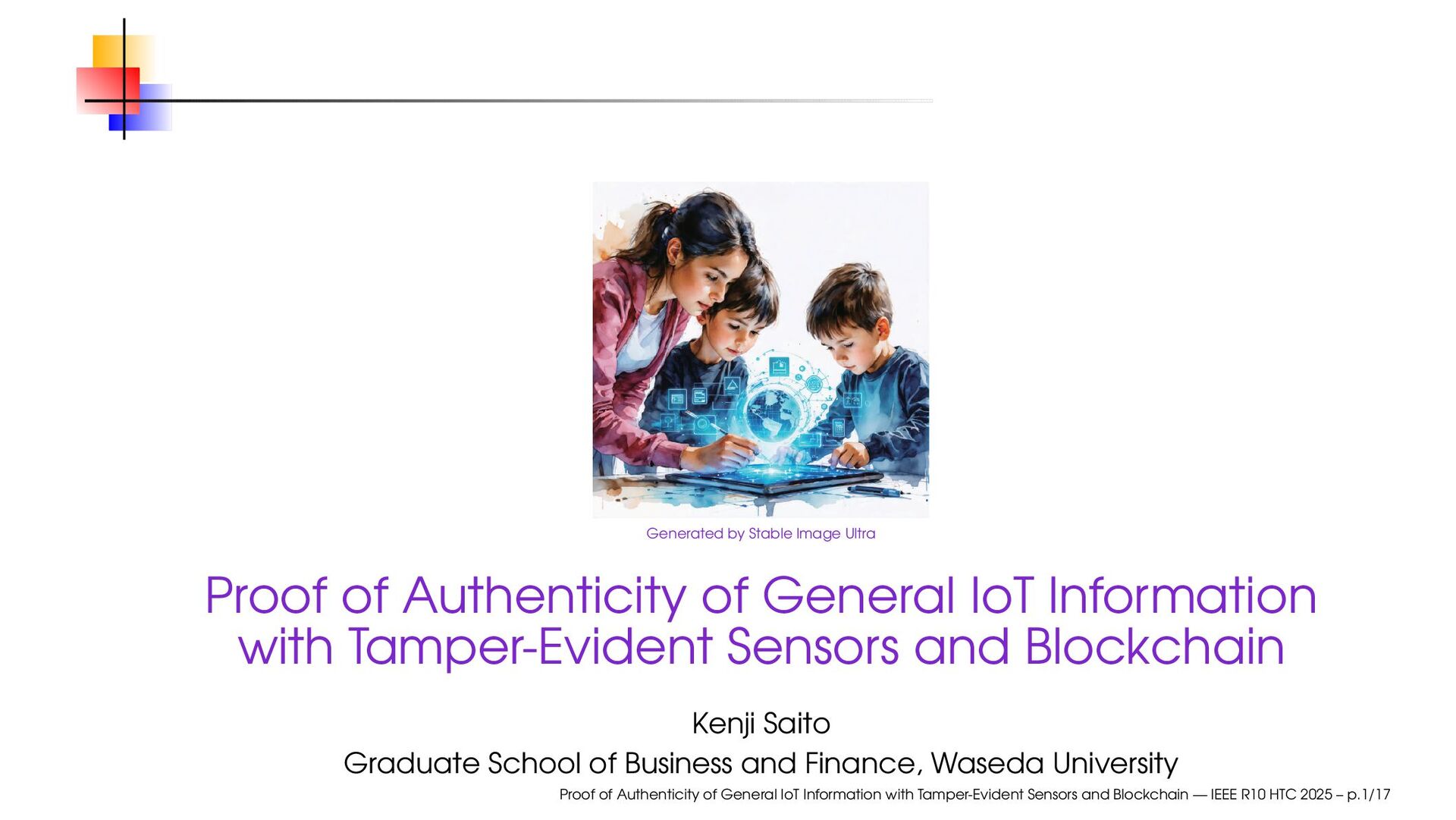 IoT Information with Tamper-Evident Sensors and Blockchain Kenji Saito Graduate School of Business and Finance, Waseda University Proof of Authenticity of General IoT Information with Tamper-Evident Sensors and Blockchain — IEEE R10 HTC 2025 – p.1/17