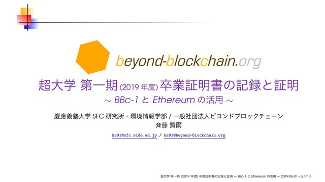 େֶ ୈҰظ (2019 ) ଔۀূ໌ॻͷهͱূ໌ ∼ BBc-1 ͱ Ethereum ͷ׆༻ ∼ 2019-06-01 – p.1/10