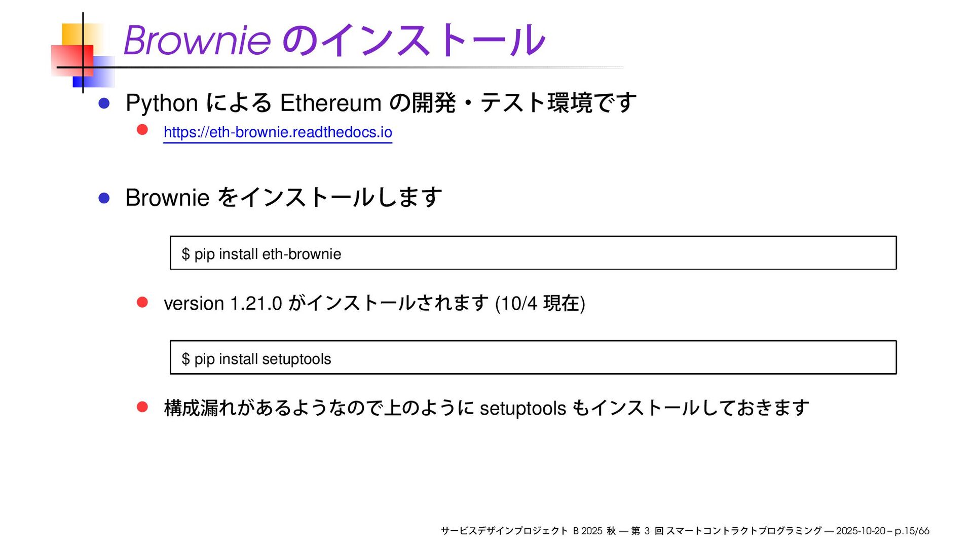 Brownie Python Ethereum https://eth-brownie.readthedocs.io Brownie $ pip install eth-brownie version