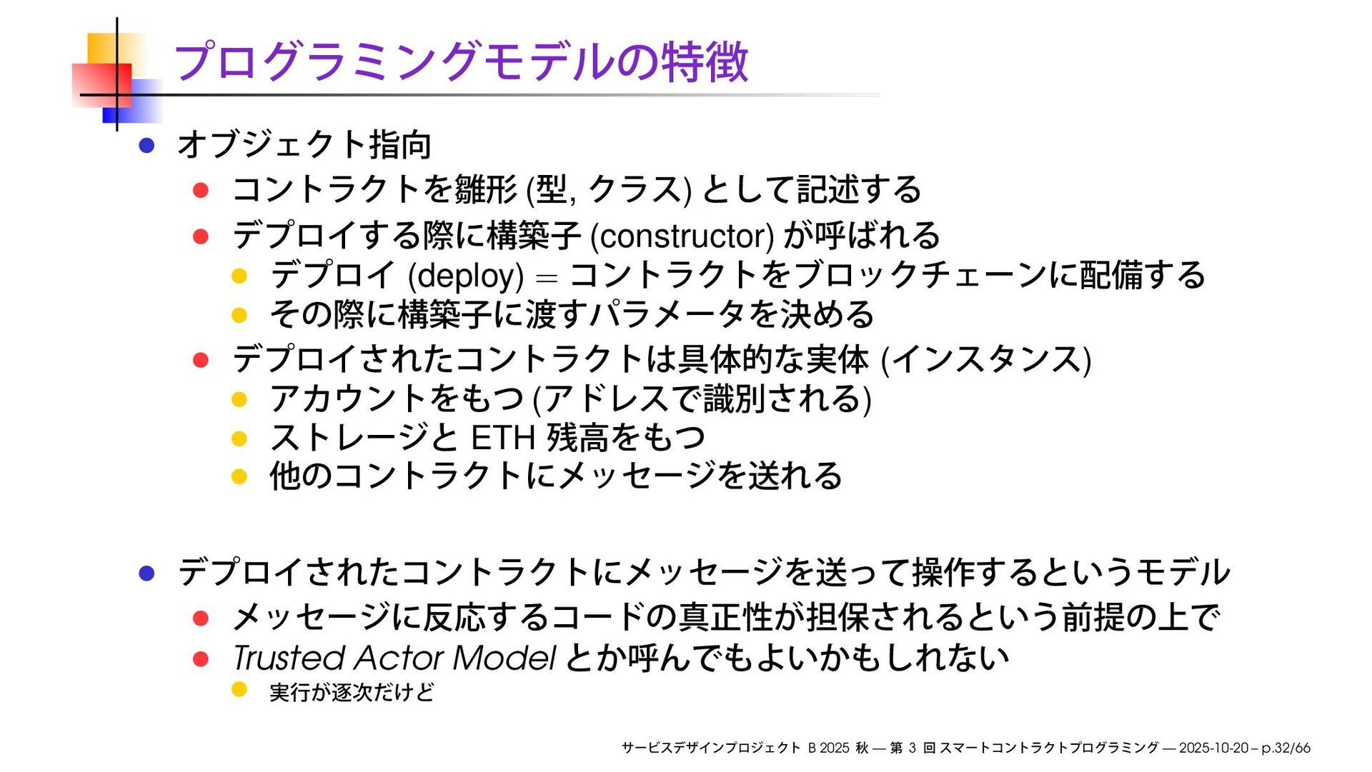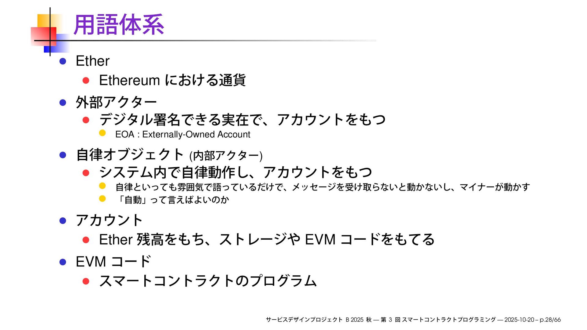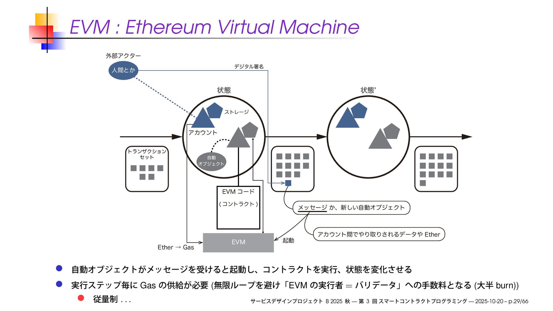 &UIFSˠ(BT ىಈ ίϯτϥΫτ ϝοηʔδ͔ɺ৽͍ࣗ͠ಈΦϒδΣΫτ ΞΧϯτؒͰΓऔΓ͞ΕΔσʔλ&UIFS ετϨʔδ ঢ়ଶ` τϥϯβΫγϣϯ ηοτ σδλϧॺ໊ &7. ਓؒͱ͔ ࣗಈ ΦϒδΣΫτ Gas ( EVM = ( burn)) . . . B 2025 — 3 — 2025-10-20 – p.29/66