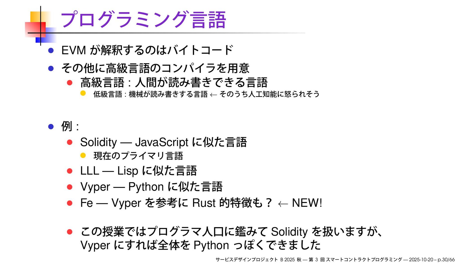 Lisp Vyper — Python Fe — Vyper Rust ← NEW! Solidity Vyper Python B 2025 — 3 — 2025-10-20 – p.30/66