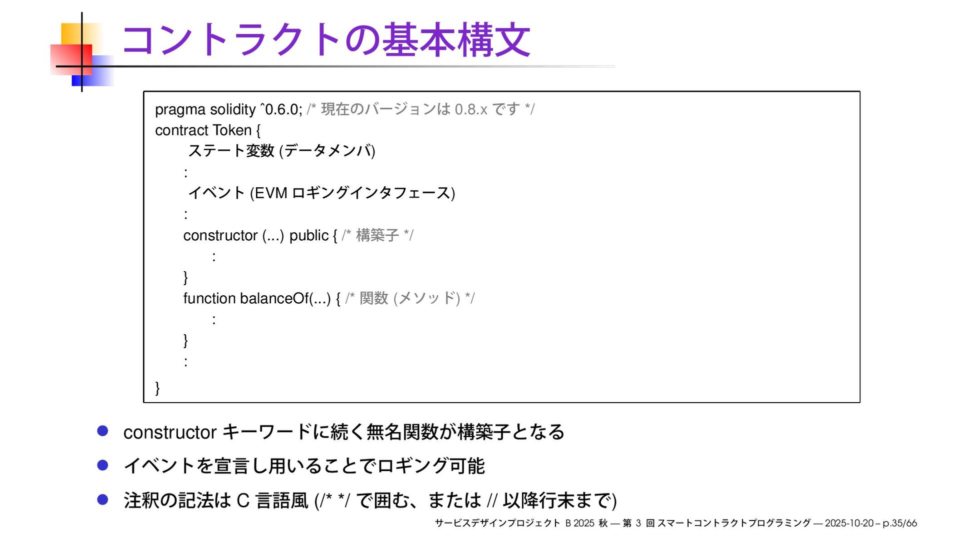 ) : (EVM ) : constructor (...) public { /* */ : } function balanceOf(...) { /* ( ) */ : } : } constructor C (/* */ // ) B 2025 — 3 — 2025-10-20 – p.35/66