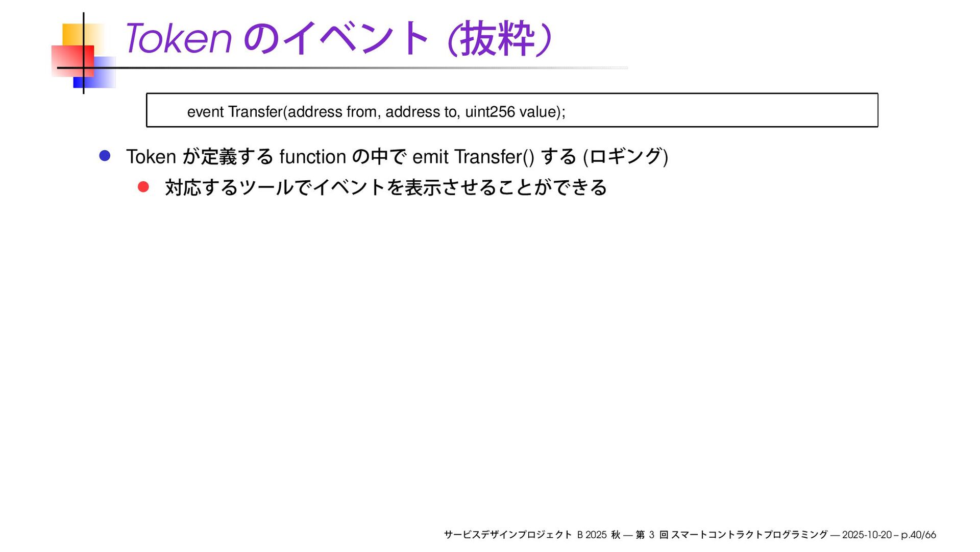 Token function emit Transfer() ( ) B 2025 — 3 — 2025-10-20 – p.40/66