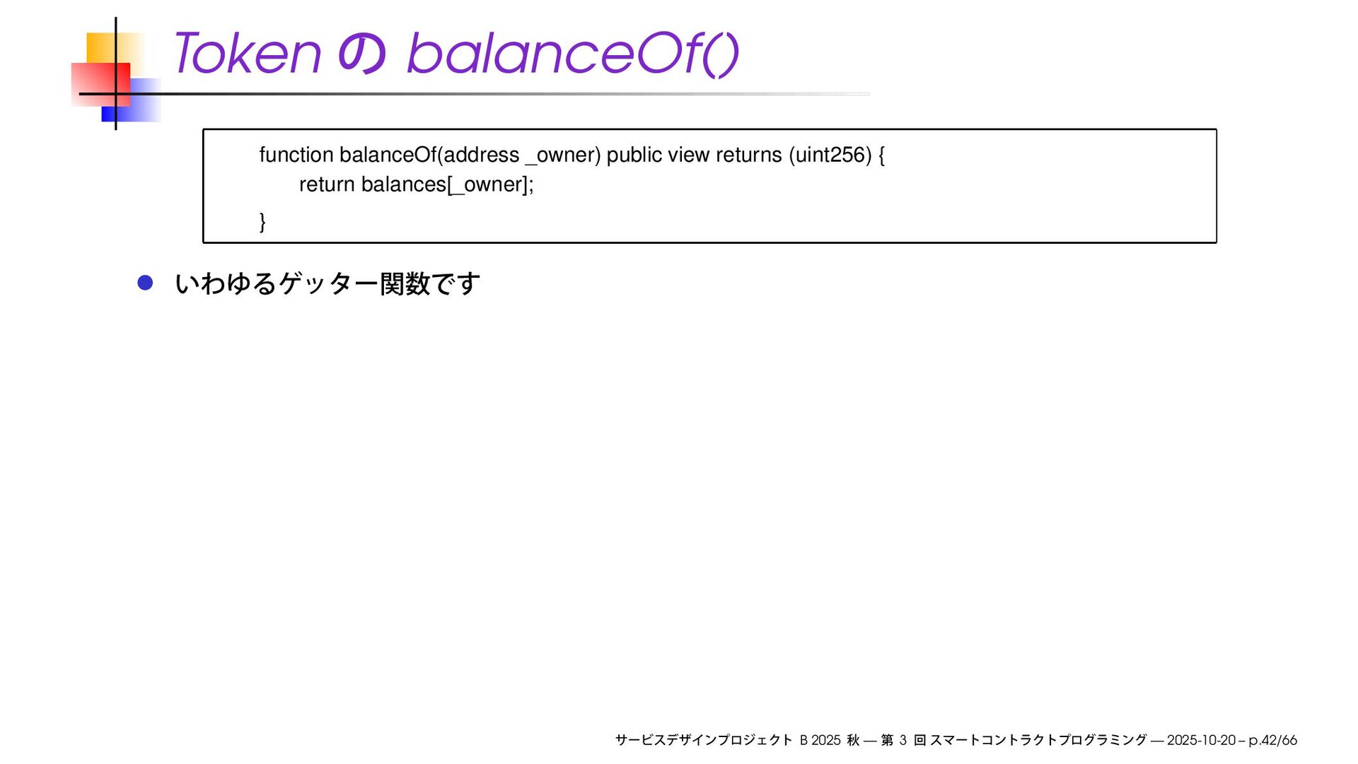return balances[_owner]; } B 2025 — 3 — 2025-10-20 – p.42/66