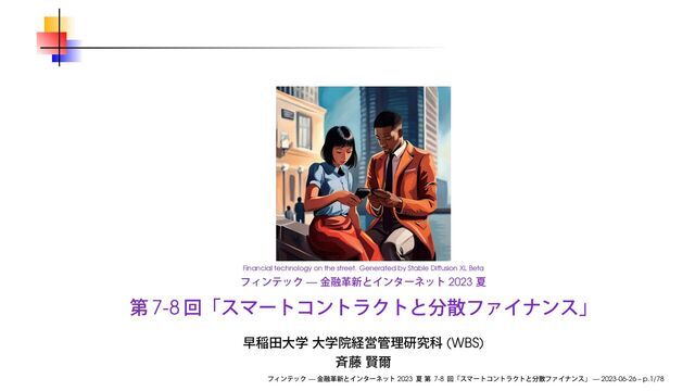 早稲田大学大学院経営管理研究科「フィンテック ─ 金融革新とインターネット」2023 夏クォーターの第7-8回で使用したスライドです。