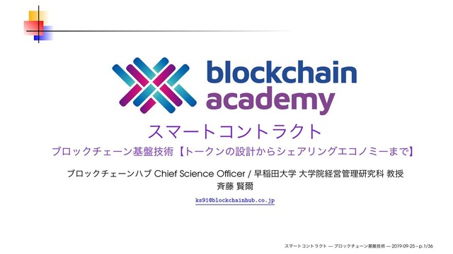 2019年9月25日(水)、ブロックチェーンハブ主催のブロックチェーンアカデミー「スマートコントラクト」にて使用したスライドです。