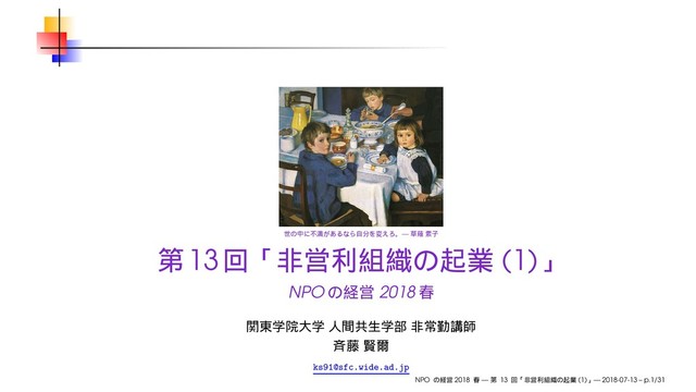 NPOの経営2018春 第13回「非営利組織の起業 (1)」 / Social Entrepreneurship 1