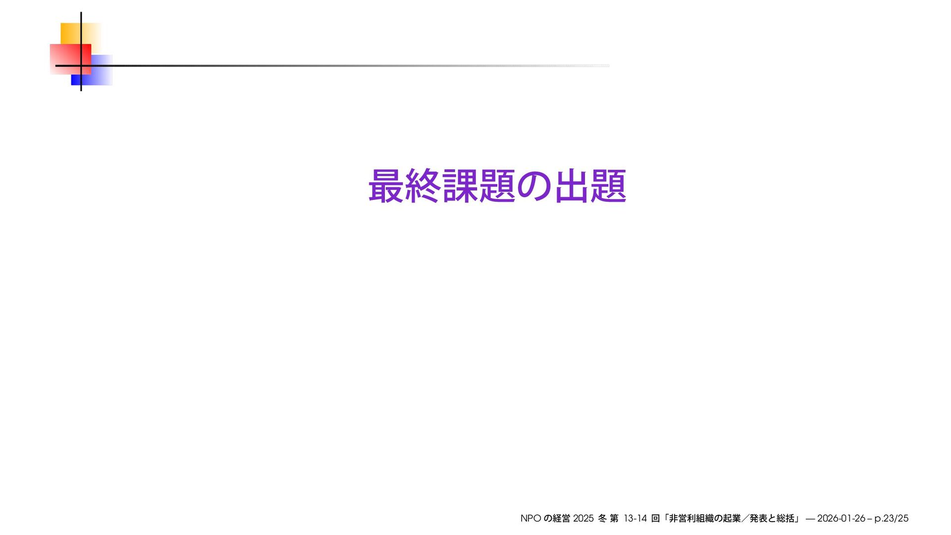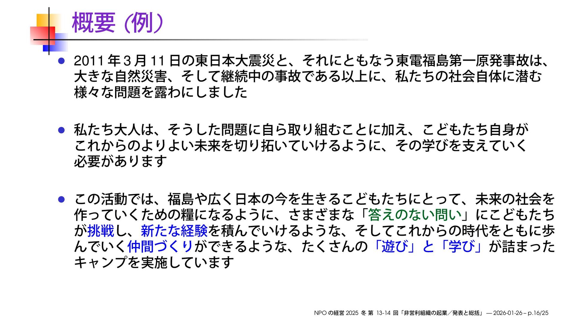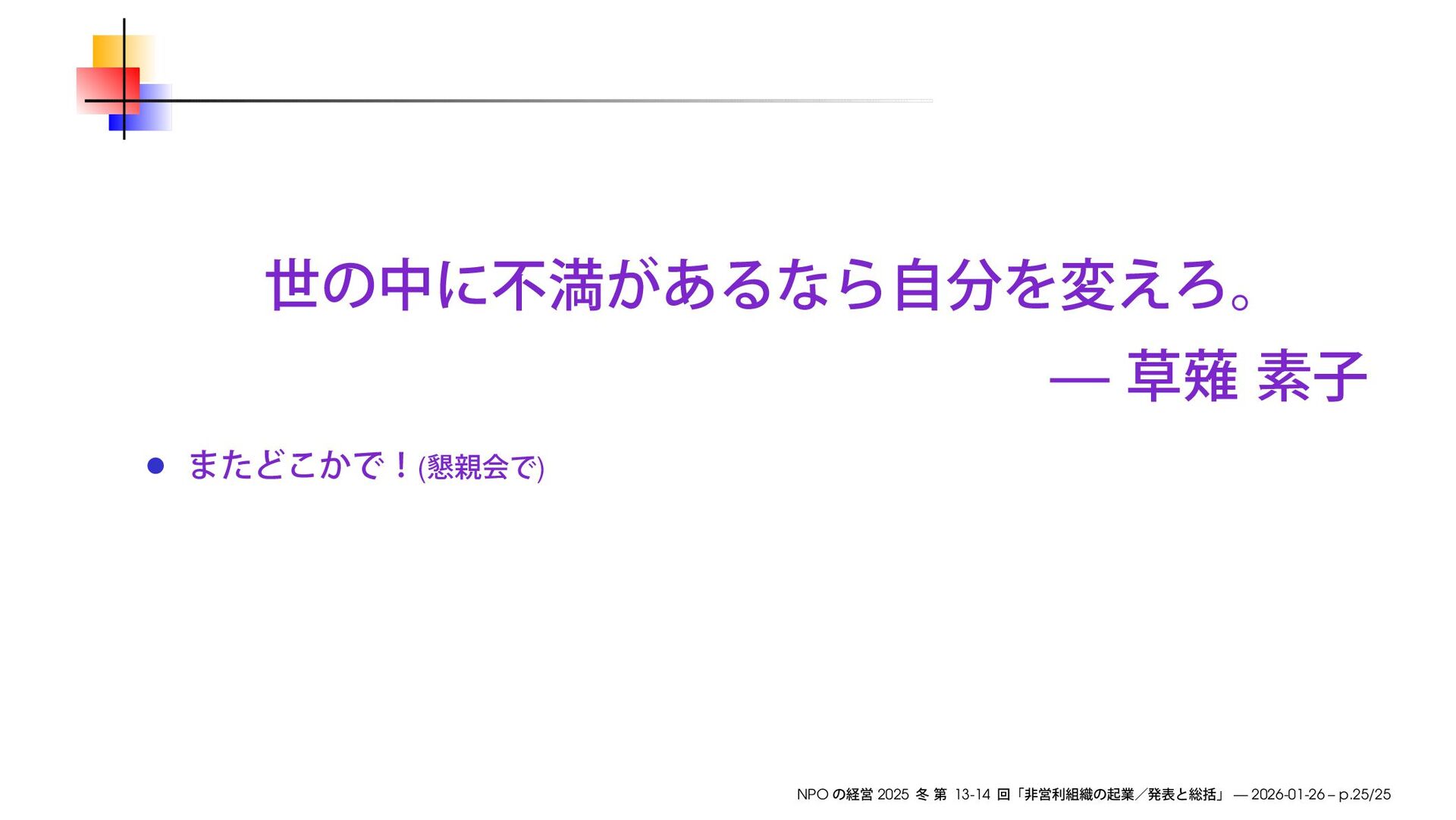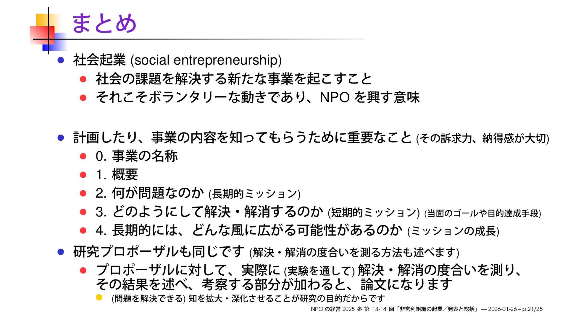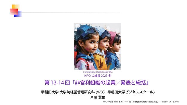 早稲田大学大学院経営管理研究科「NPO の経営」2025 冬の第13-14回で使用したスライドです。