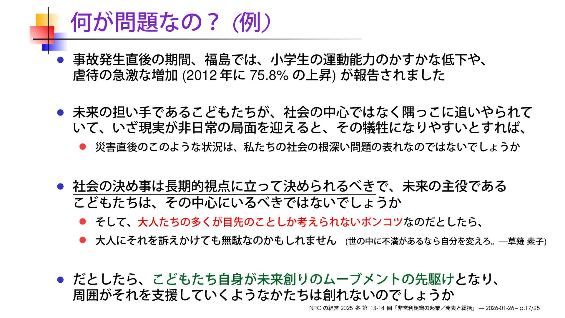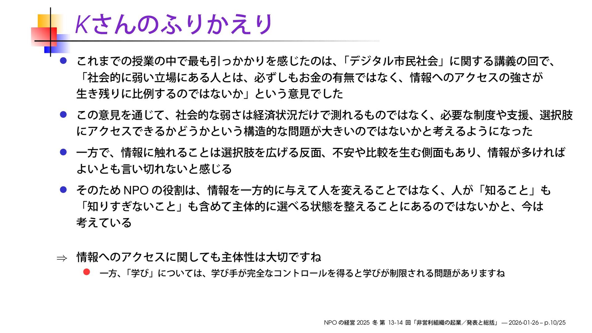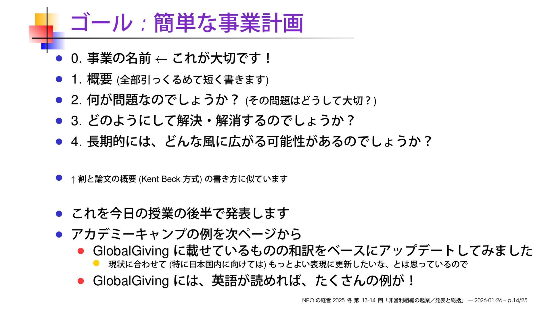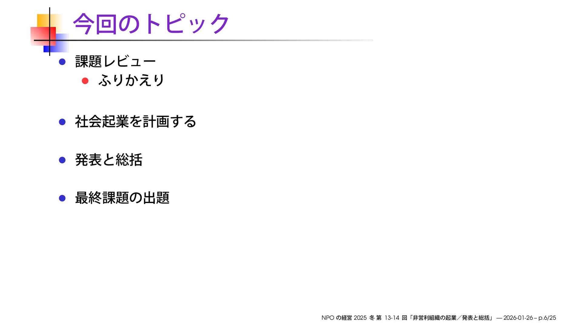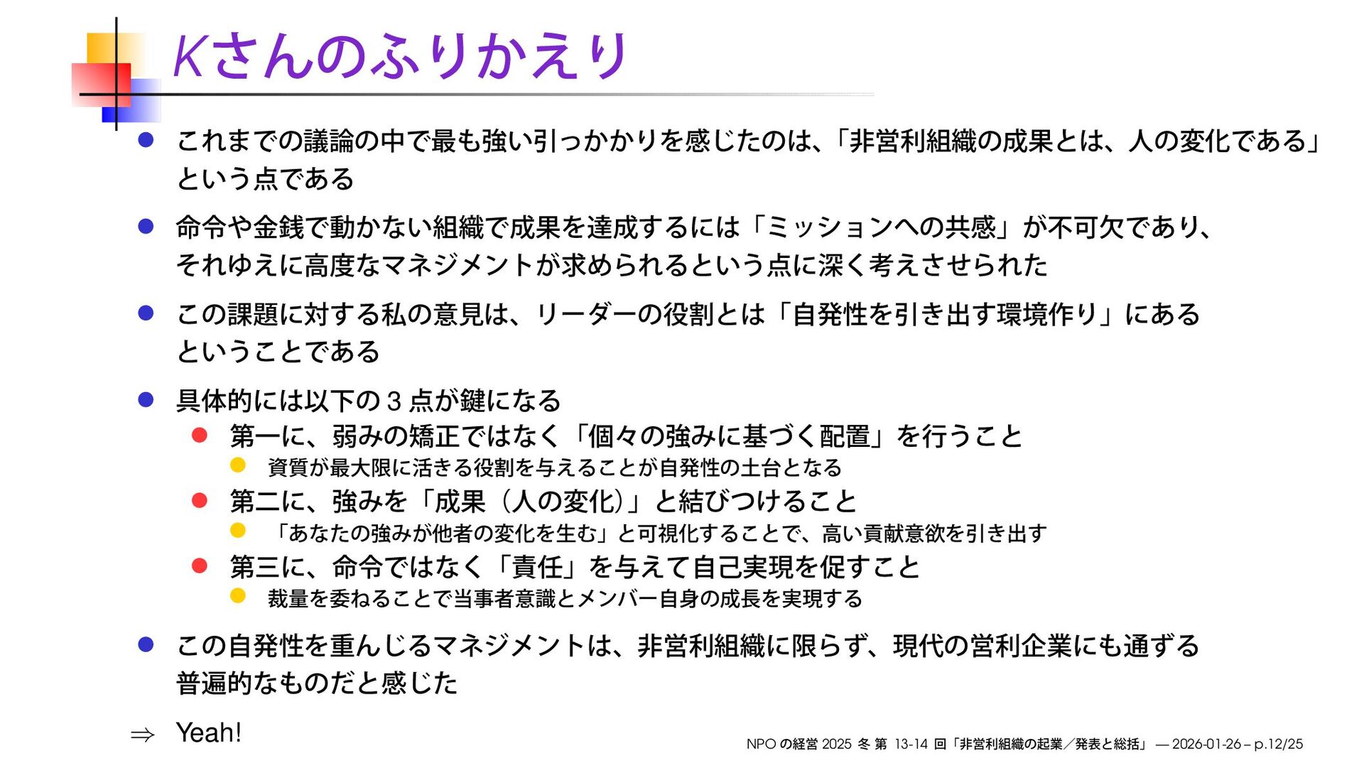 早稲田大学大学院経営管理研究科「NPO の経営」2025 冬の第13-14回で使用したスライドです。